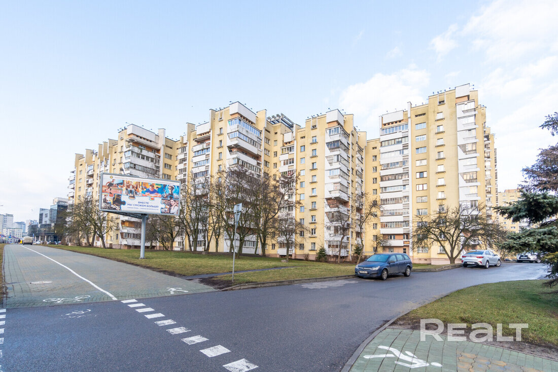Рядом есть магазины, парк, напротив протекает Свислочь. У дома находятся остановки общественного транспорта.
