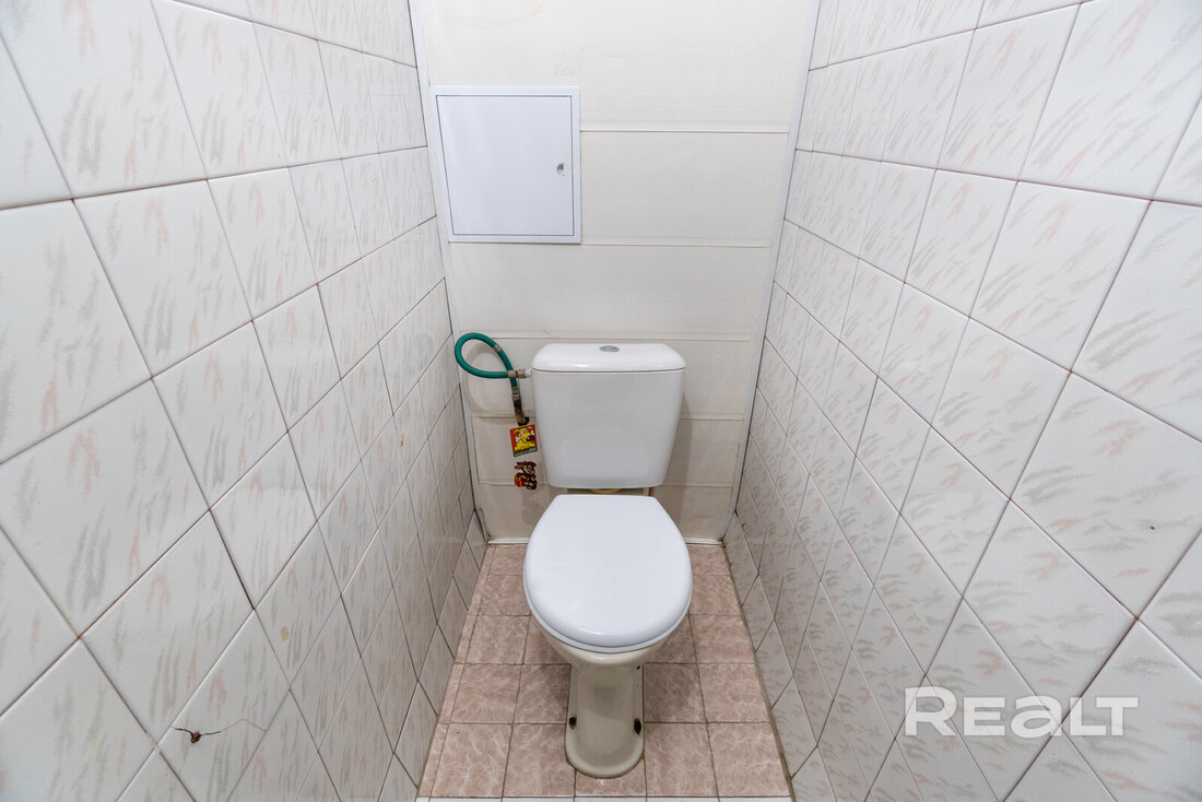 Санузел — раздельный. Ванна и туалет облицованы плиткой.