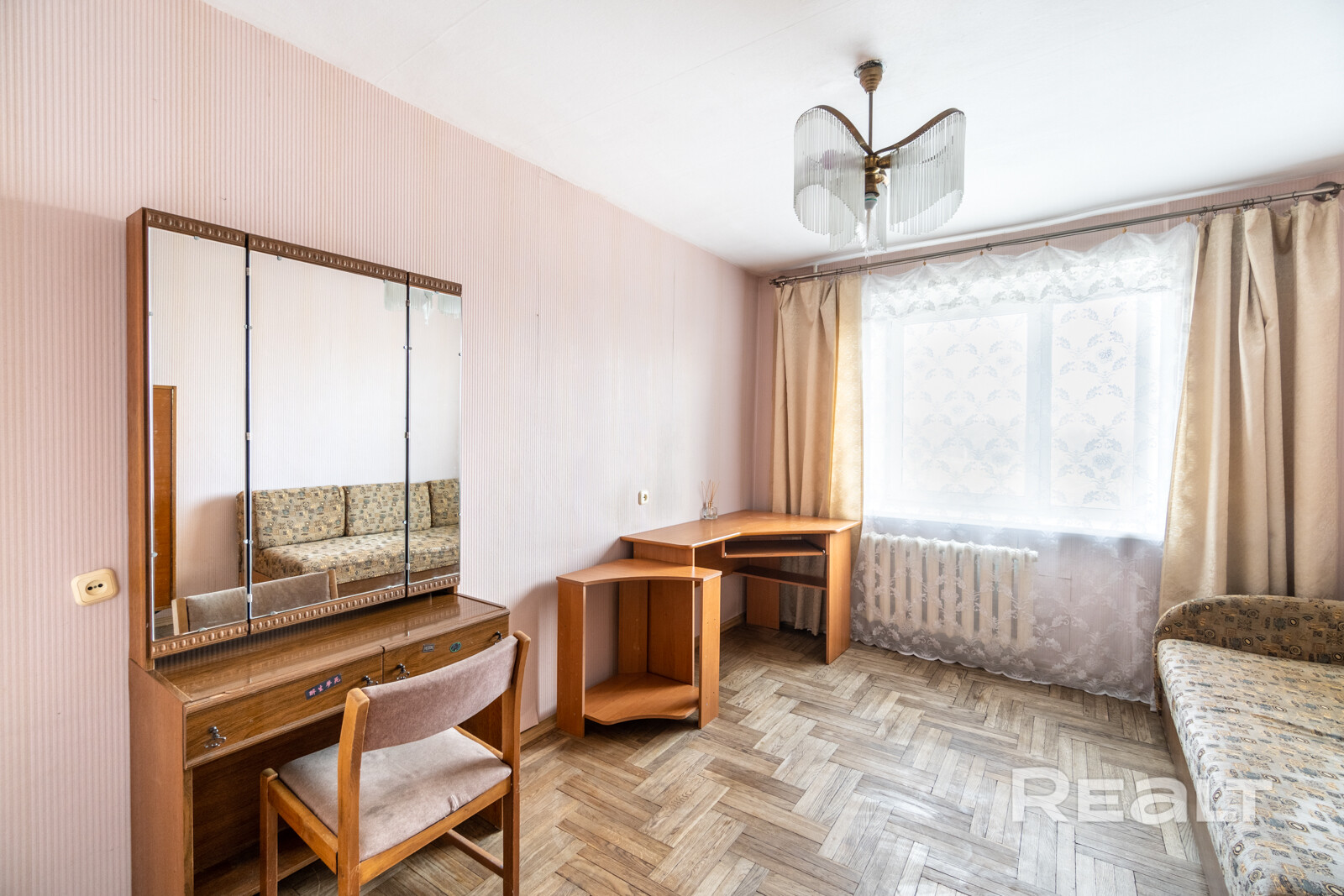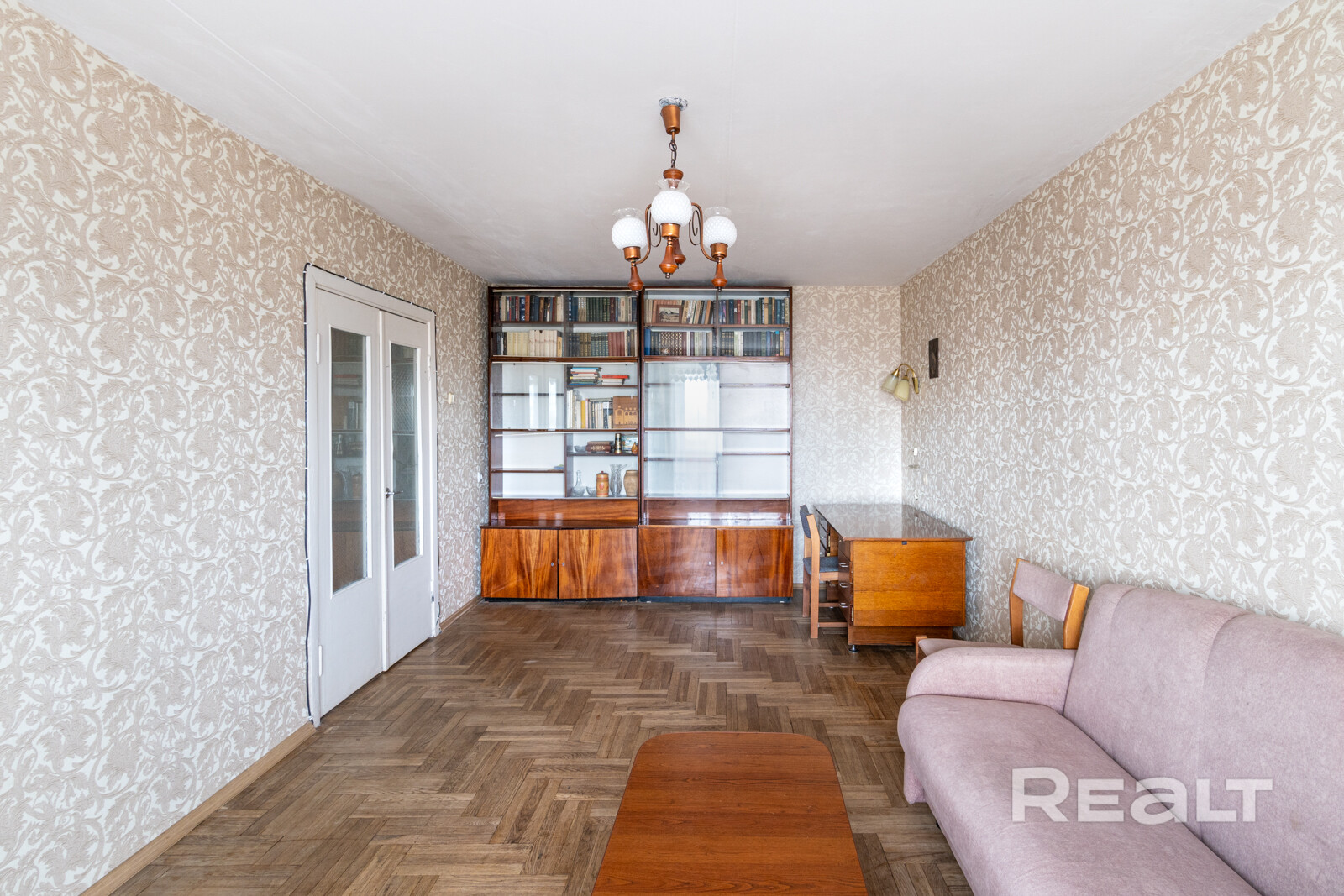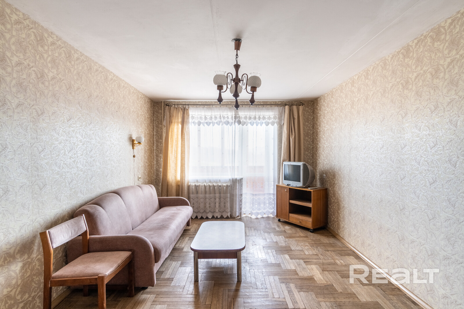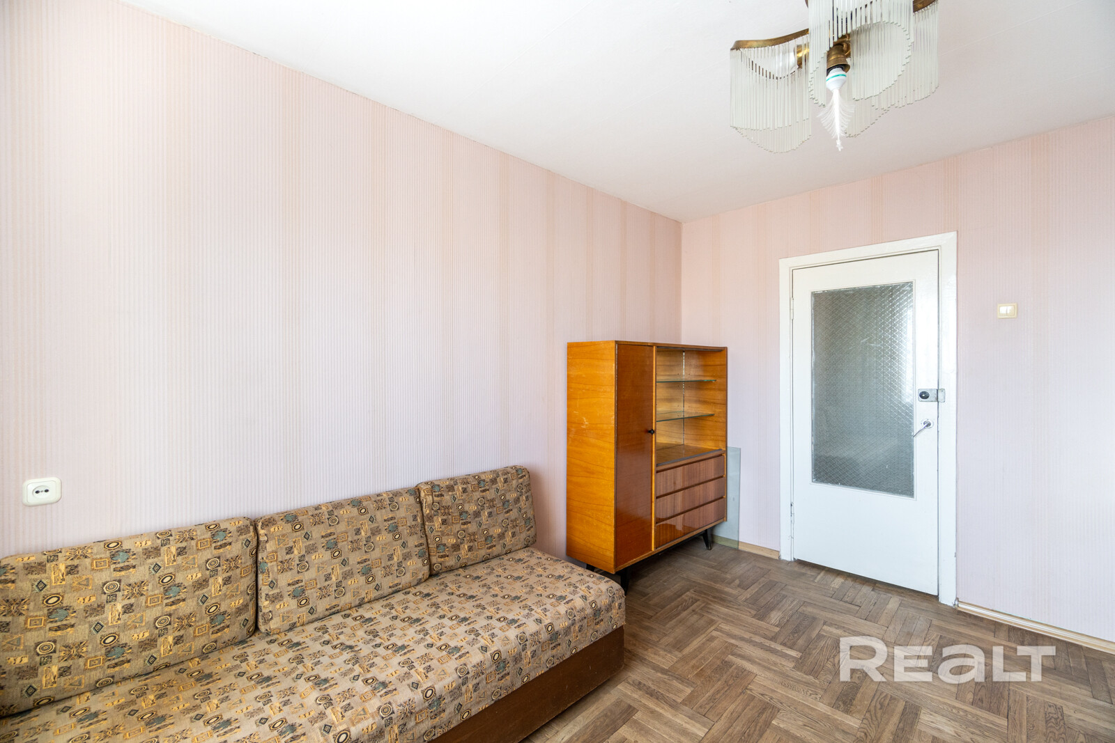 А еще обратите внимание на советскую лакированную мебель, люстру и тот самый паркет.