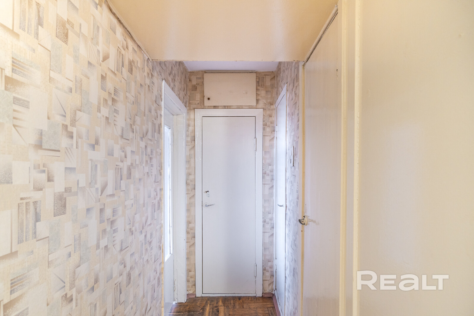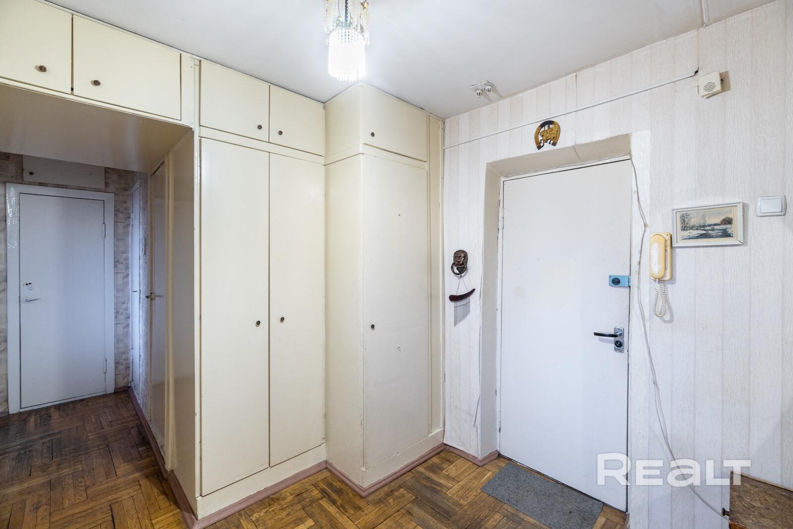 В коридоре есть ниши под шкаф и антресоль. А еще — знакомая многим советским семьям деревянная картина с березками.