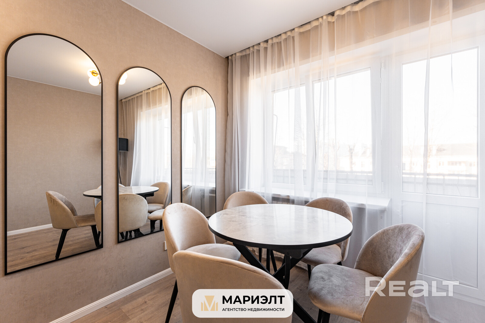 Около дома находятся остановки общественного транспорта. Поблизости располагаются скверы Маломедвежинский и Полянка. За 10 минут можно добраться до станций метро «Грушевка» и «Площадь Франтишка Богушевича».