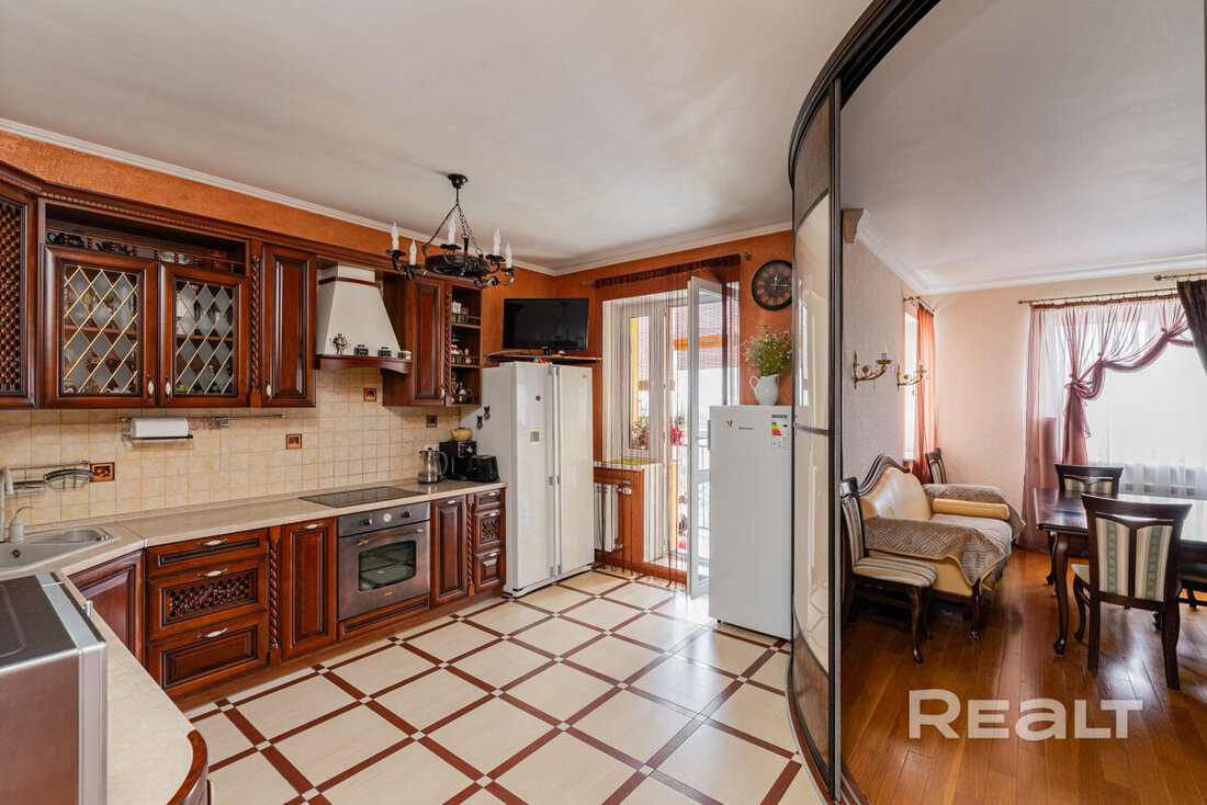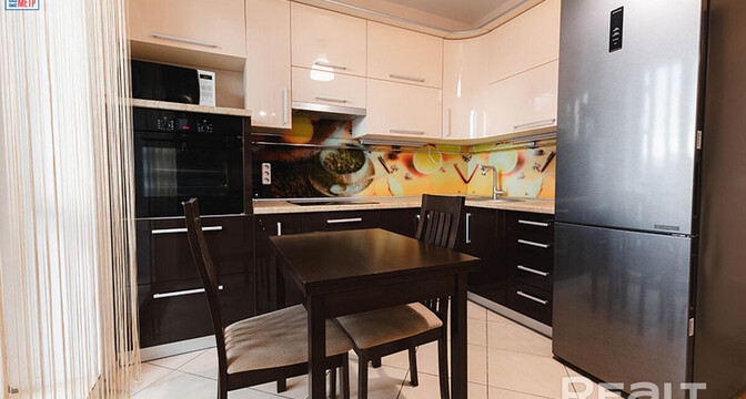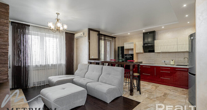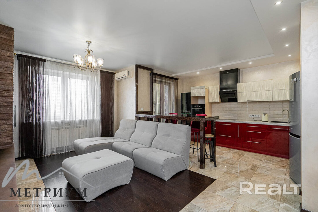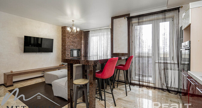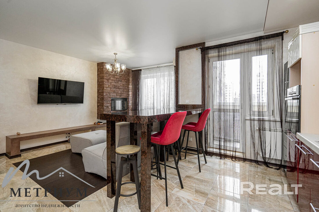 Ну, а самый дорогой вариант — двухуровневая квартира, занимающая последние этажи одной из высоток. Общая площадь этого жилья составляет 124 квадратных метра. Квартира полностью укомплектована мебелью и техникой для комфортного проживания. Тут выполнен ремонт из дорогостоящих и качественных материалов. Мебель изготавливалась и привозилась по индивидуальному заказу. Есть бытовая техника ведущих производителей и множество мест хранения. Стоимость — 220 тысяч долларов (1703 доллара — за метр).