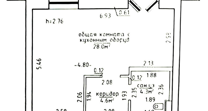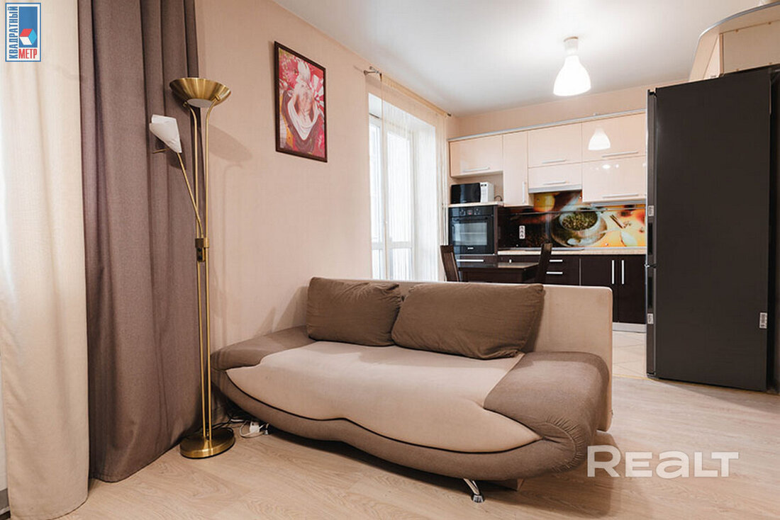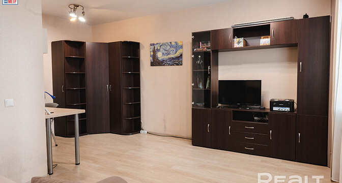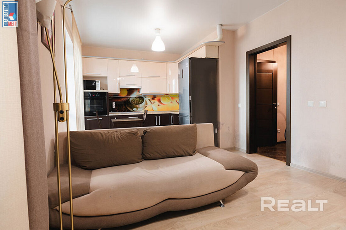 Самый недорогой вариант — однокомнатная квартира, расположенная на первом этаже. Площадь жилья составляет 42 квадратных метра. Квартира состоит из одной жилой комнаты с кухонным оборудованием, коридора и просторного санузла. В комнате — два окна, из зоны кухни есть выход на застекленную лоджию. Жилье полностью готово к проживанию. Есть встроенная кухня с бытовой техникой (духовой шкаф, варочная панель, вытяжка), в санузел — душевая кабина и стиральная машина. Стоимость — 75 тысяч долларов (1773 доллара — за метр).