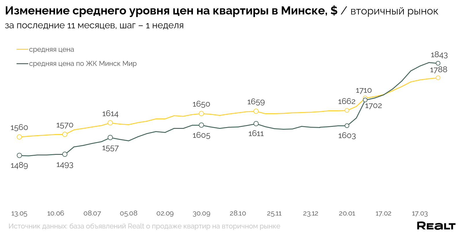 На объем предложения и индекс цен в Минске сильно влияет большое количество объявлений в базе Realt о продаже квартир в строящихся новостройках преимущественно Октябрьского, а также Центрального и Московского районов. Чтобы минимизировать их воздействие на показатели, описывающие вторичный рынок продажи квартир, все представленные ниже данные рассчитаны без учета квартир в строящихся домах.
