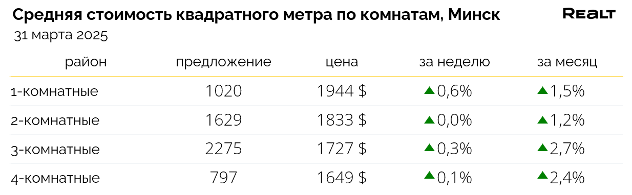 За последние семь дней количество объявлений о продаже квартир на вторичном рынке жилья в базе Realt практически не изменилось. При этом выбор самых востребованных 1-комнатных квартир снизился на 2%, а всего было в продаже 1020 квартир. В то же время выбор трешек и четырешке, напротив, увеличился.