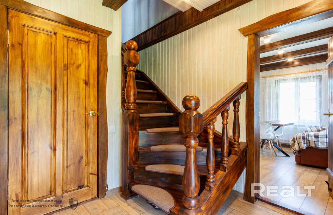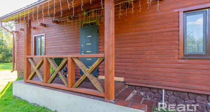 Бревенчатый дом возвели в городском поселке Свирь в Мядельском районе. Жилью всего один год. Два уровня занимают 104,1 м², из них жилой площади — 66,9 м².