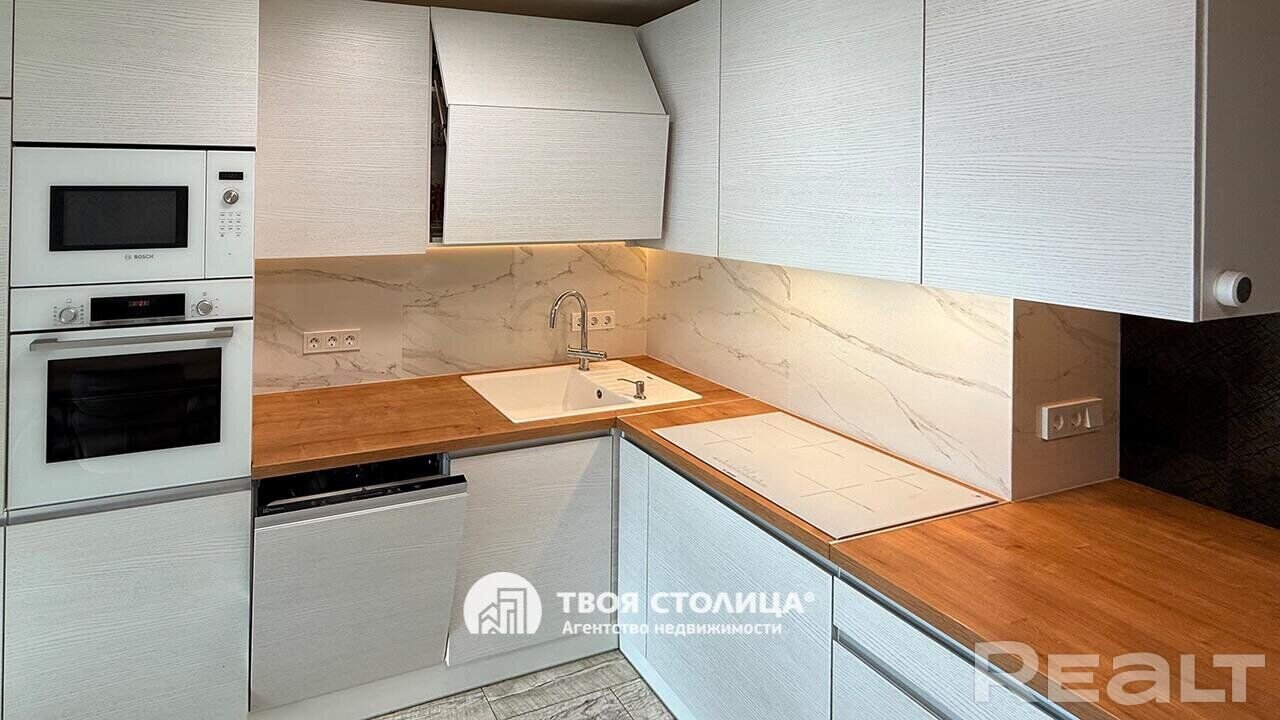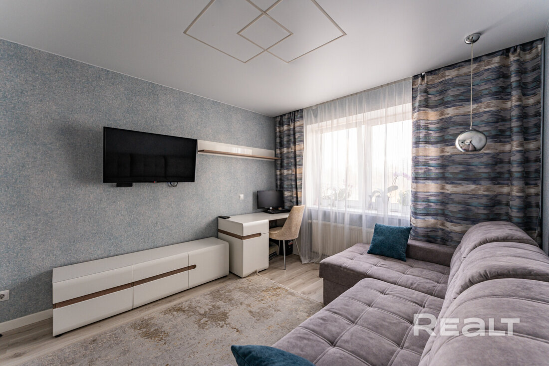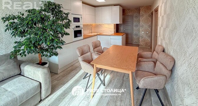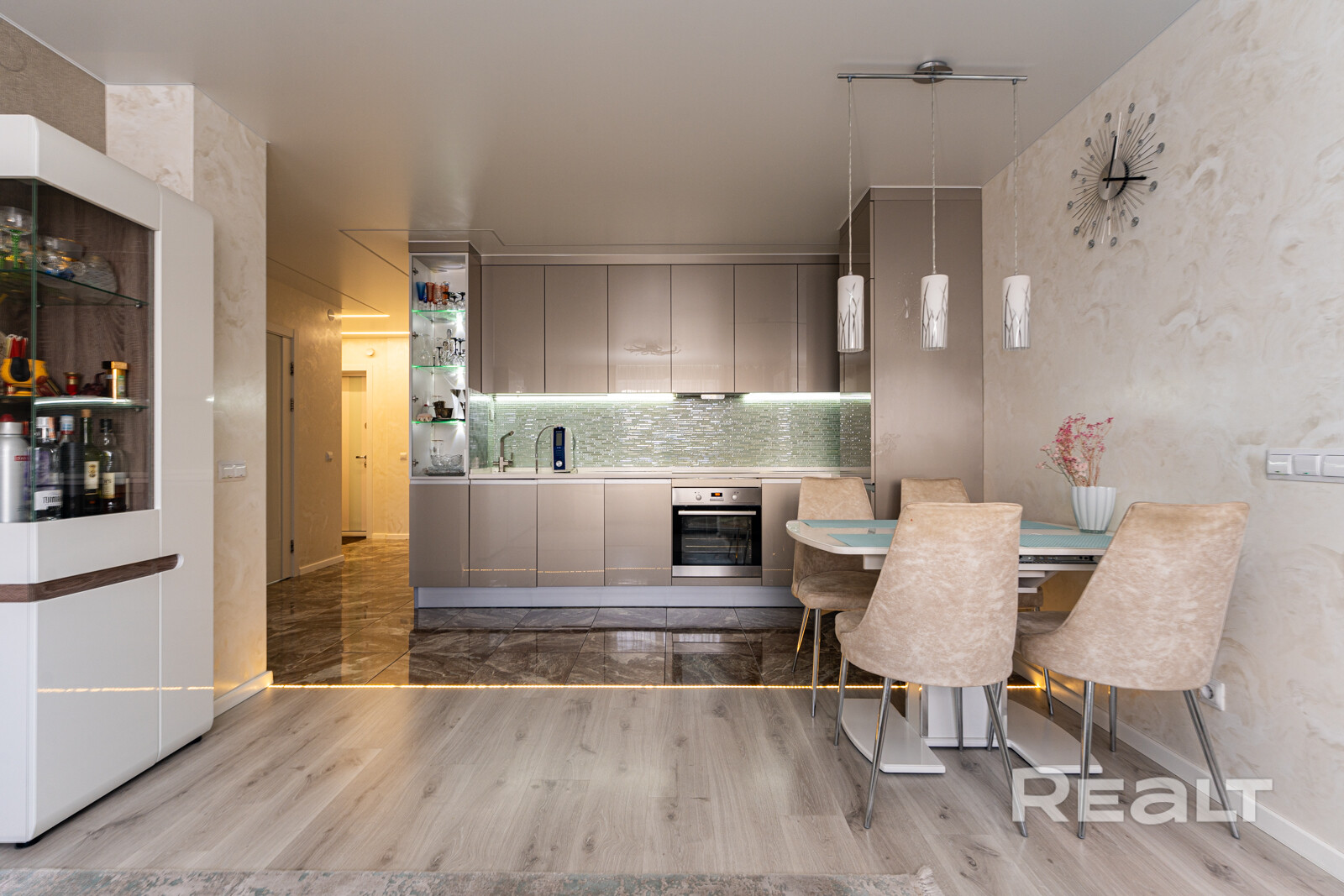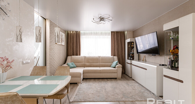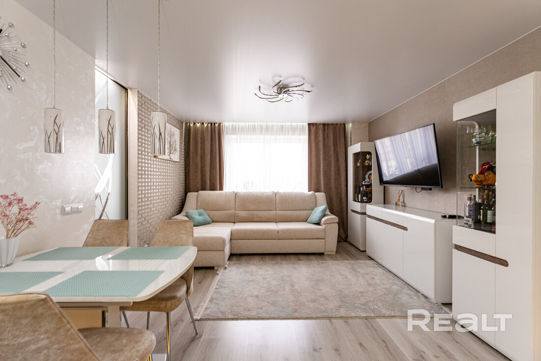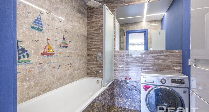 Также в продаже есть уютная евротрешка, расположенная на третьем этаже дома 4/А. Ее общая площадь насчитывает 71 квадратный метр. В квартире — современный интерьер в мягких тонах. На полу лежит ламинат премиум класса и испанская плитка. Есть функция «теплый пол». Квартира полностью меблирована удобной мебелью и бытовой техникой. Стоимость — 149,9 тысячи долларов (2091 доллар — за метр).