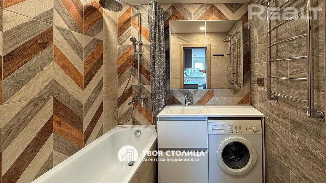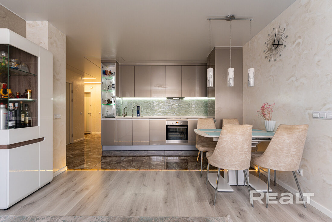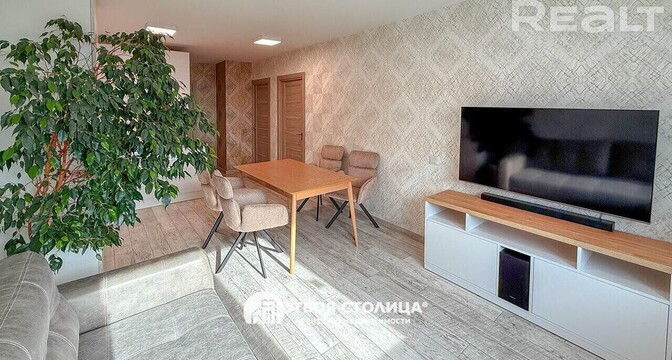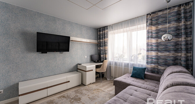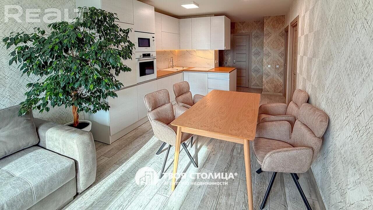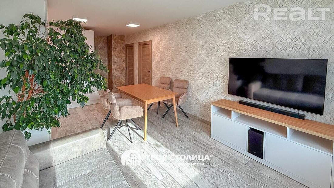 Почти столько же стоит и трехкомнатная квартира на 16-м этаже дома 4/Б. Площадь этой квартиры составляет 66 квадратных метров. Это — также евротрешка с общей кухней-гостиной и двумя отдельными комнатами. В квартире сделан хороший ремонт, есть вся техника и мебель. В комнатах — большие окна. В трешке предусмотрено два санузла. Также тут есть кондиционер и два встроенных шкафа. На лоджии можно организовать кабинет или зону отдыха. Туда проведены все коммуникации. Стоимость — 150 тысяч долларов (2180 долларов — за метр).