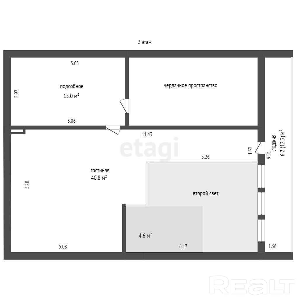 На втором уровне сделано открытое пространство в 40 квадратов. Здесь же есть подсобное помещение и чердак. отсюда можно выйти и на лоджию.