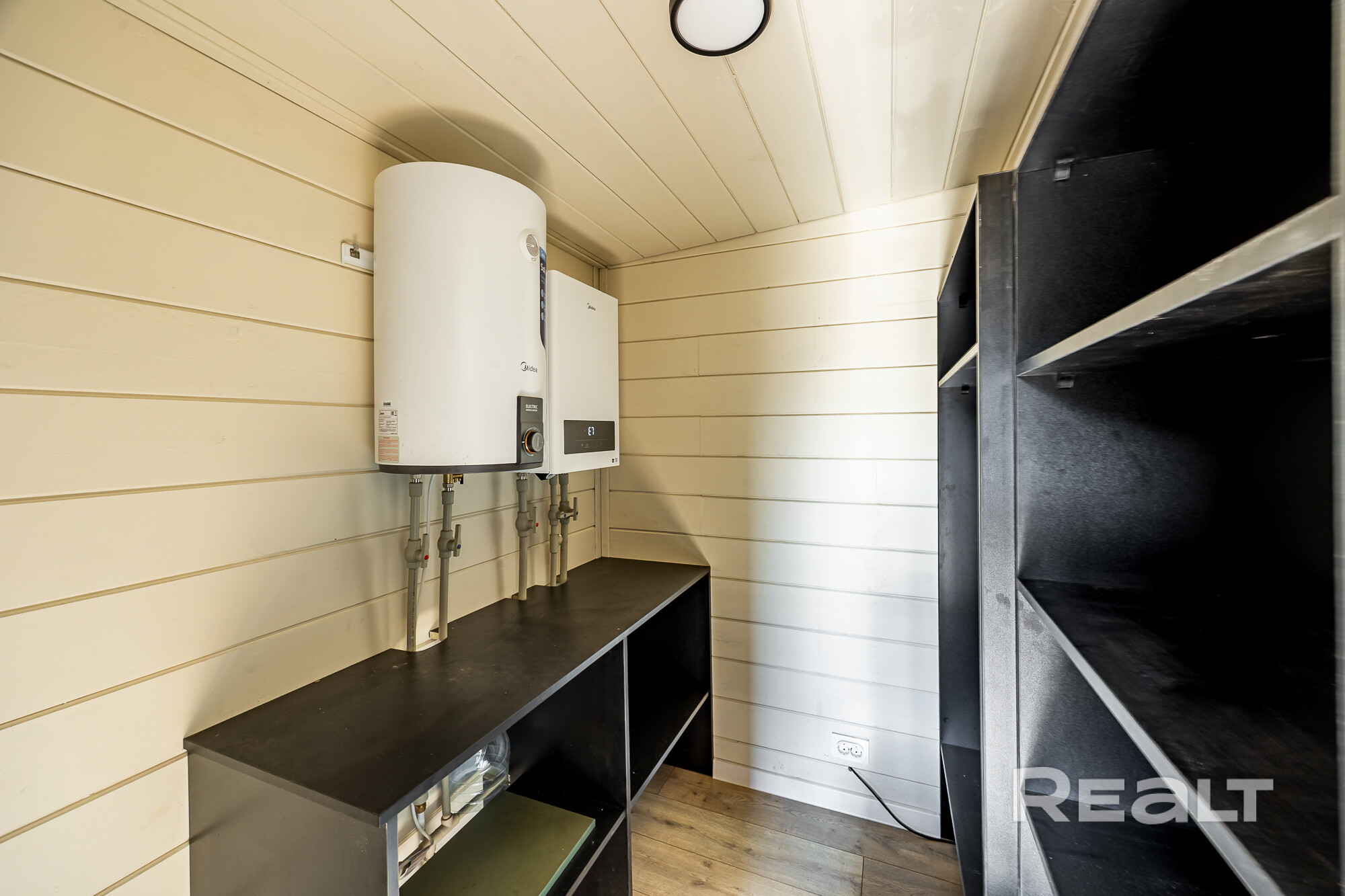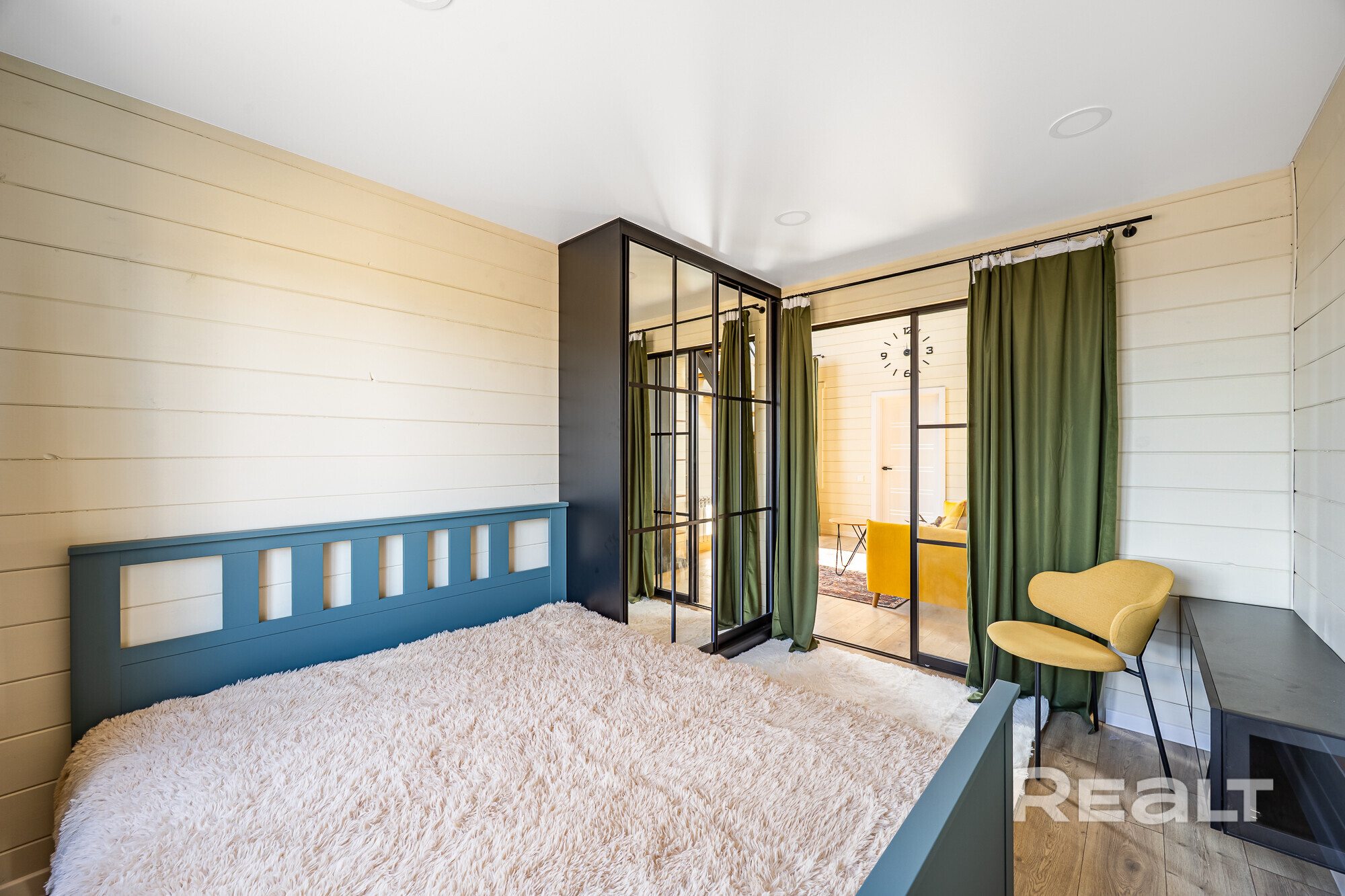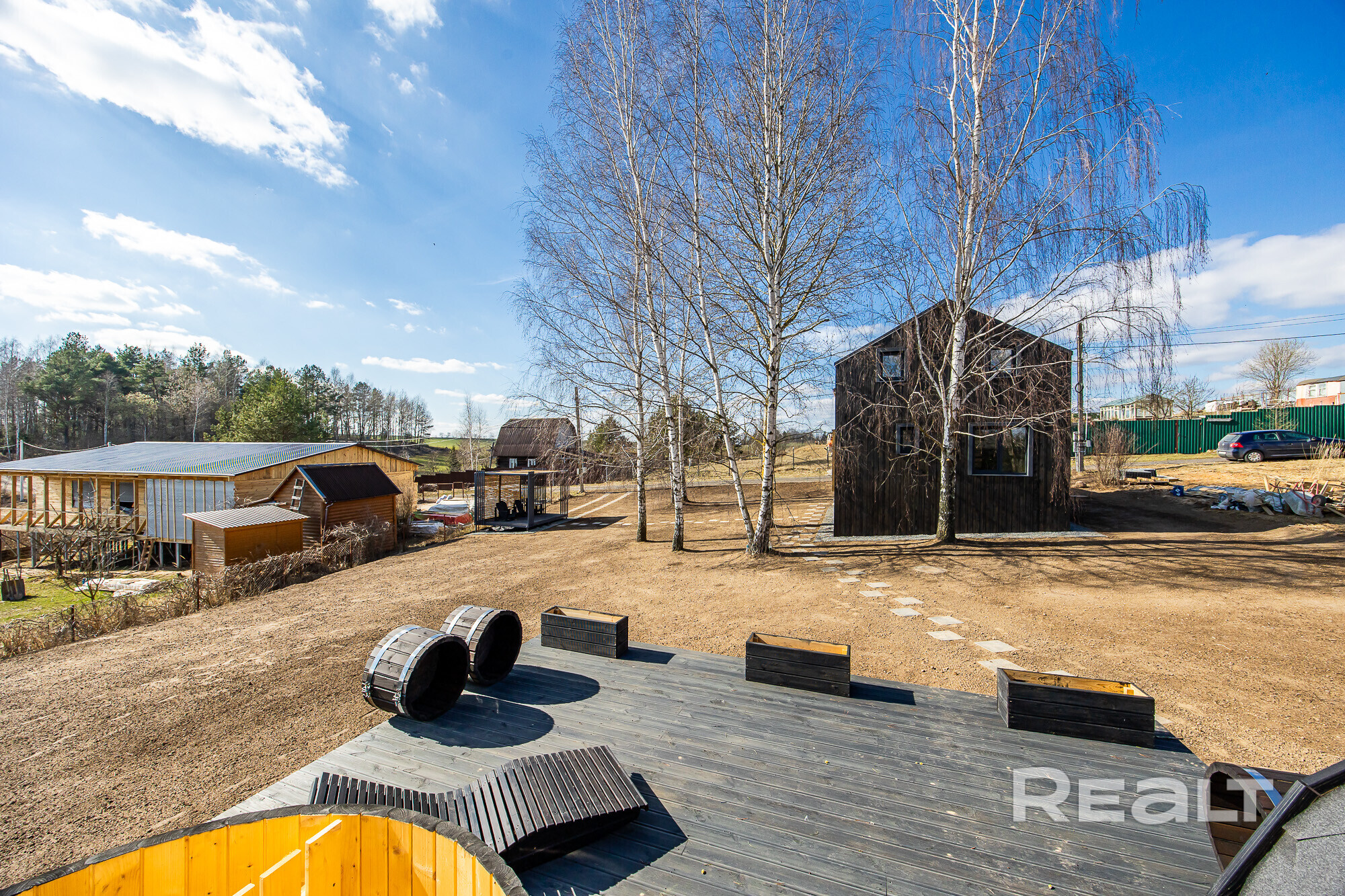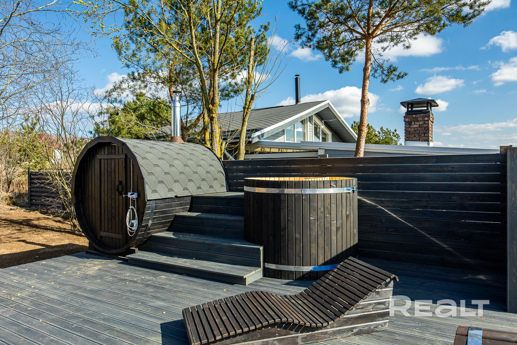 Такая дача нам нужна — стильная, комфортная, с мебелью и всеми удобствами и абсолютно новая. Здесь будет приятно провести не только лето, но и остаться на зиму — утепление стен и наличие отопления позволяет сделать дачный сезон круглогодичным. По сути, это формат городской квартиры, только с тишиной, чистым воздухом и природой. А еще с террасой и банькой во дворе. Такой дом в 20 минутах от Минска не может быть дешевым, но в нашем случае стоимость не выглядит заоблачной — он стоит как двушка без отделки.