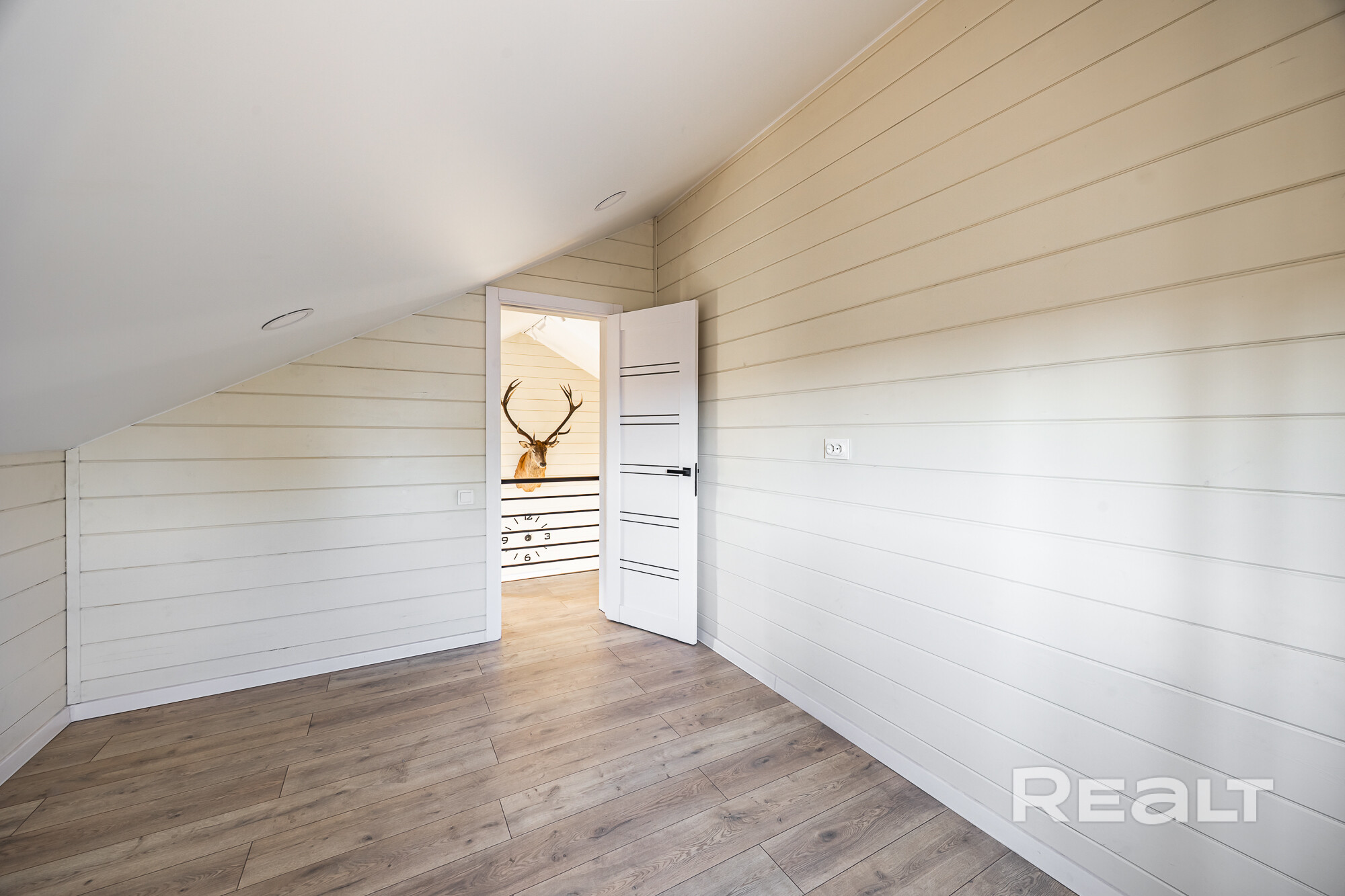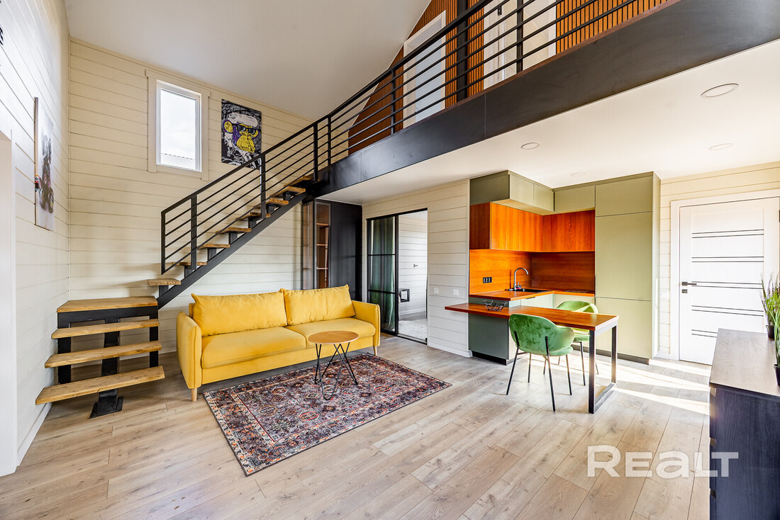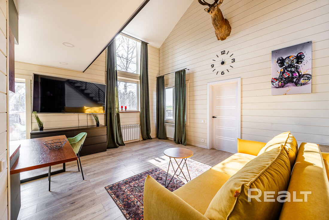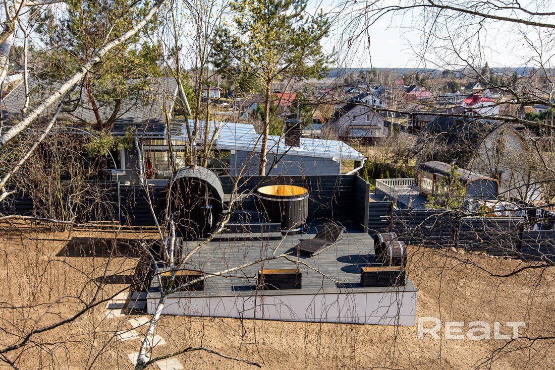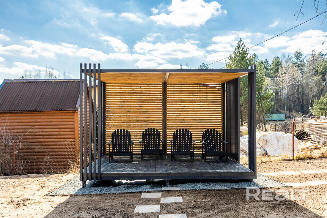 Такая дача нам нужна — стильная, комфортная, с мебелью и всеми удобствами и абсолютно новая. Здесь будет приятно провести не только лето, но и остаться на зиму — утепление стен и наличие отопления позволяет сделать дачный сезон круглогодичным. По сути, это формат городской квартиры, только с тишиной, чистым воздухом и природой. А еще с террасой и банькой во дворе. Такой дом в 20 минутах от Минска не может быть дешевым, но в нашем случае стоимость не выглядит заоблачной — он стоит как двушка без отделки.