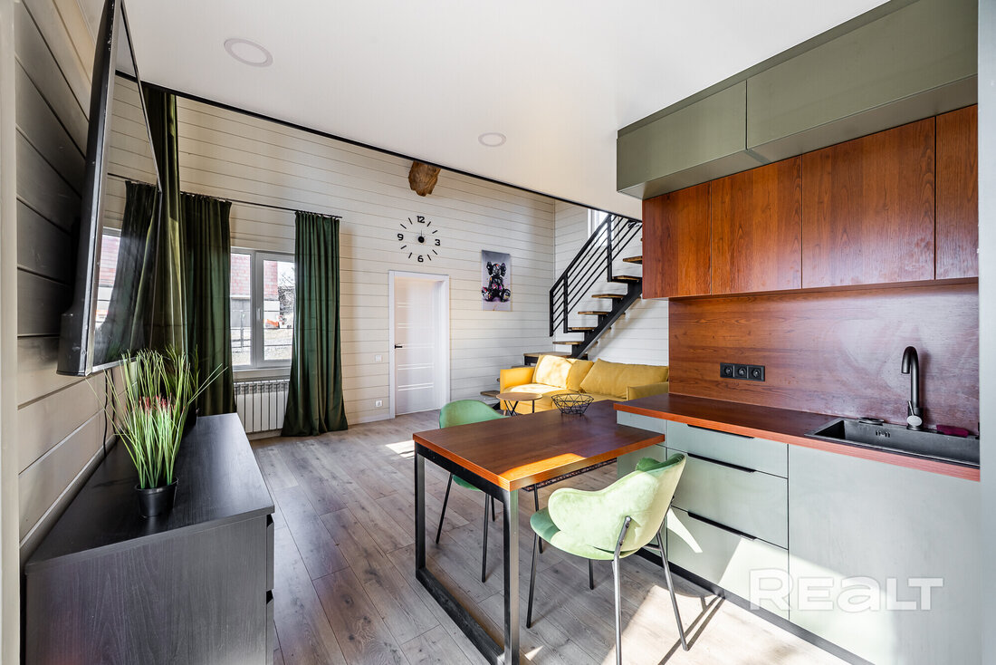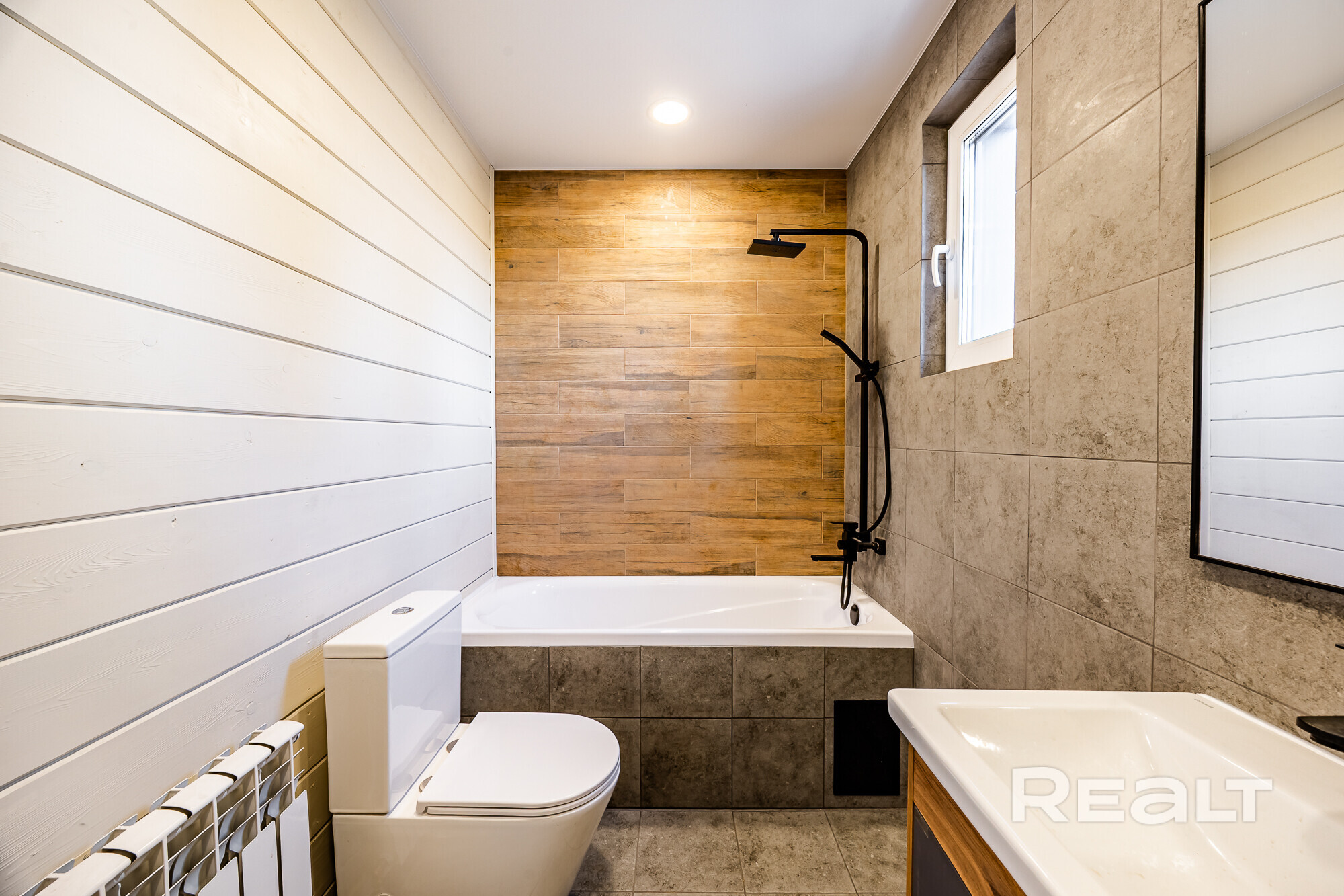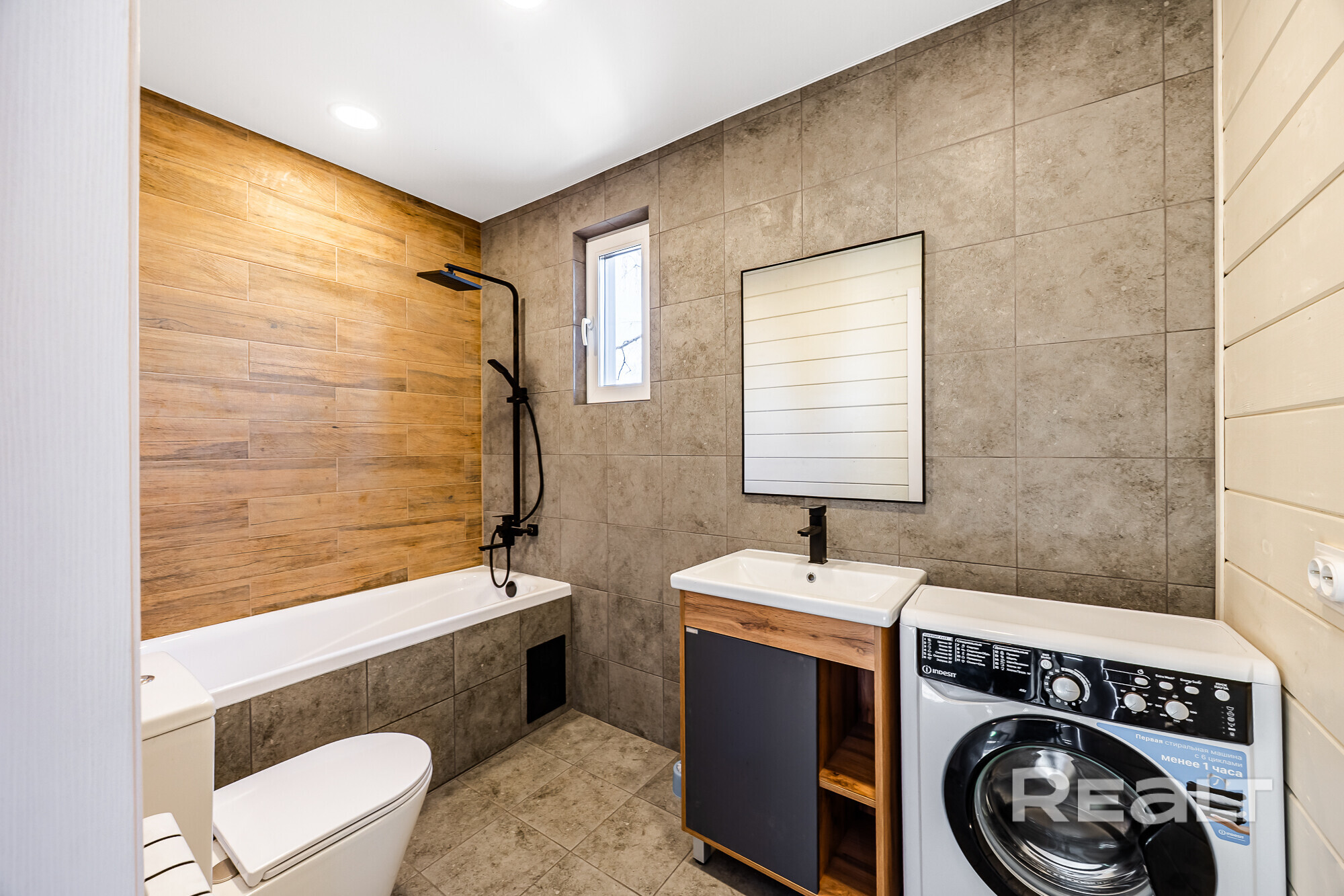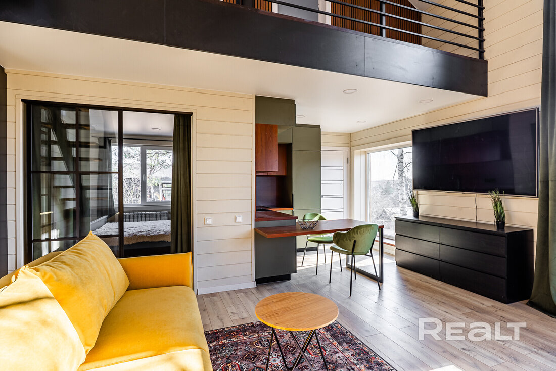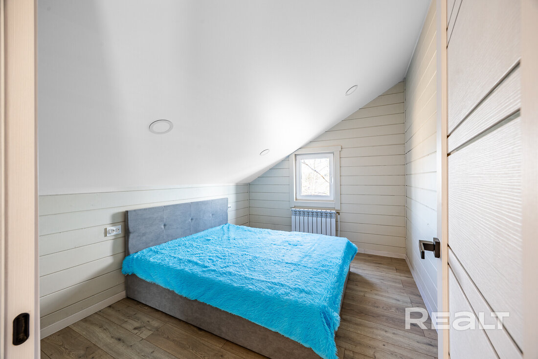 Такая дача нам нужна — стильная, комфортная, с мебелью и всеми удобствами и абсолютно новая. Здесь будет приятно провести не только лето, но и остаться на зиму — утепление стен и наличие отопления позволяет сделать дачный сезон круглогодичным. По сути, это формат городской квартиры, только с тишиной, чистым воздухом и природой. А еще с террасой и банькой во дворе. Такой дом в 20 минутах от Минска не может быть дешевым, но в нашем случае стоимость не выглядит заоблачной — он стоит как двушка без отделки.