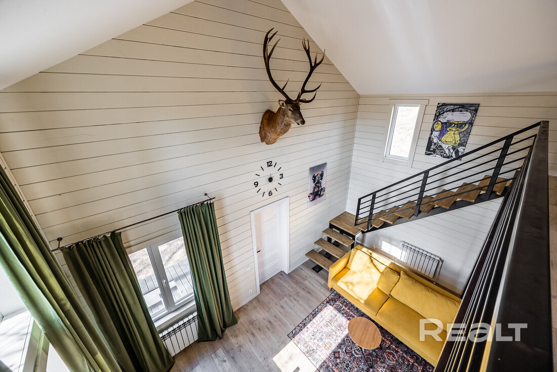 По архитектуре это классический барнхаус со вторым светом и жилым пространством под крышей. Общая площадь — 110 квадратов.
