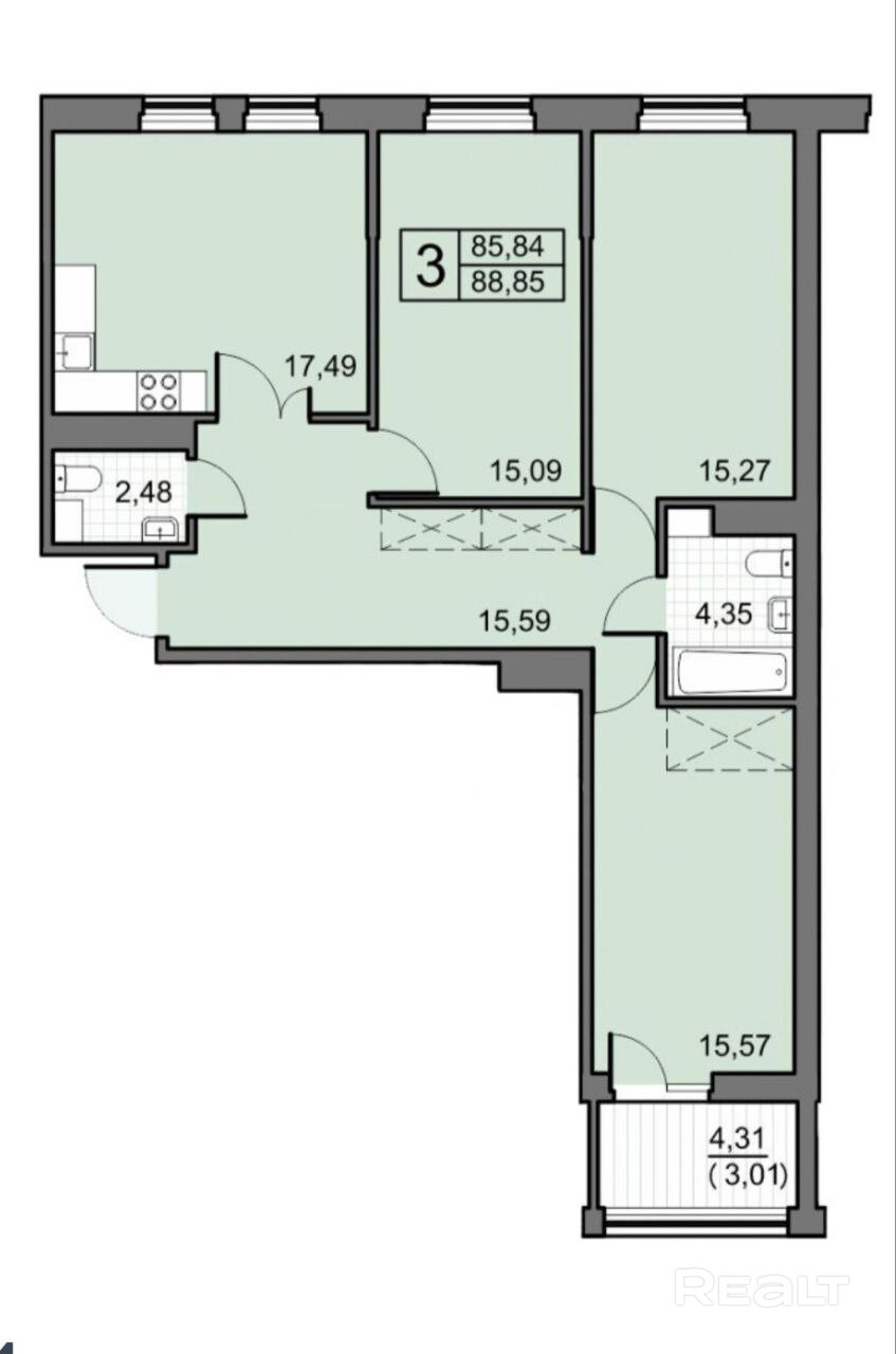 Самое дорогое предложение — трехкомнатная квартира на 8-м этаже. Площадь этой квартиры по СНБ — 88 квадратных метров. Планировка — 3 отдельные комнаты и кухня-гостиная, 2 санузла, застекленная лоджия, все окна в пол. Функциональная планировка квартиры позволяет воплотить самые смелые дизайнерские проекты. Стоимость — 124,5 тысячи долларов (1401 доллар — за метр).