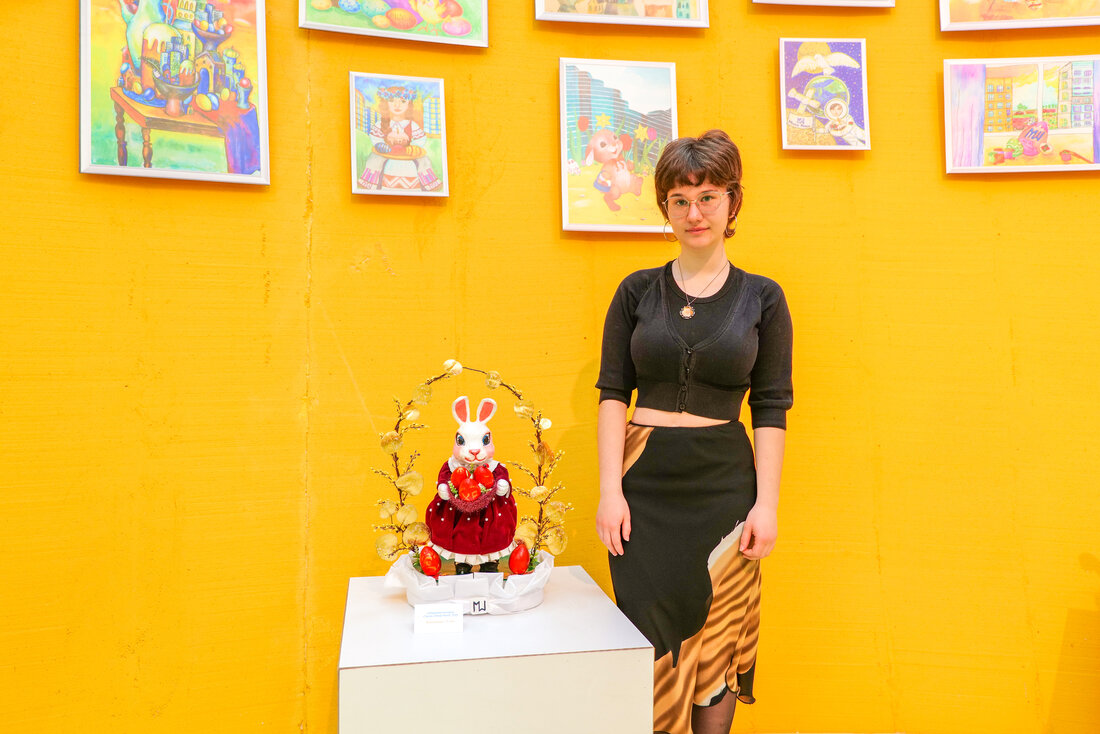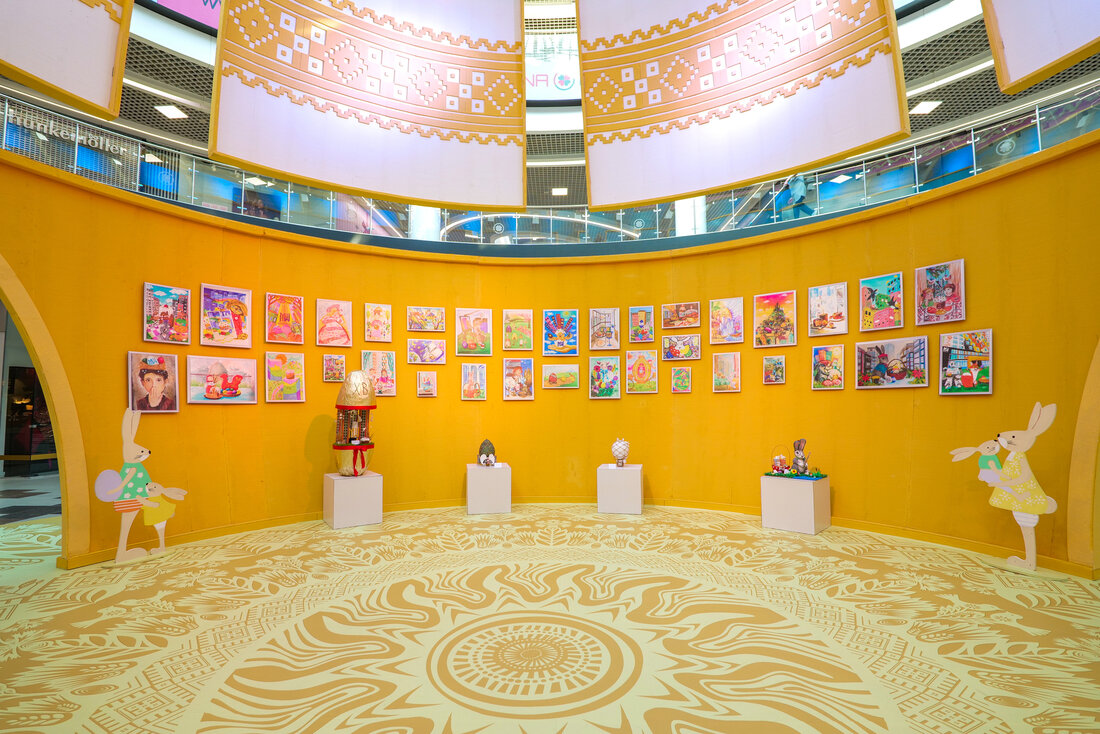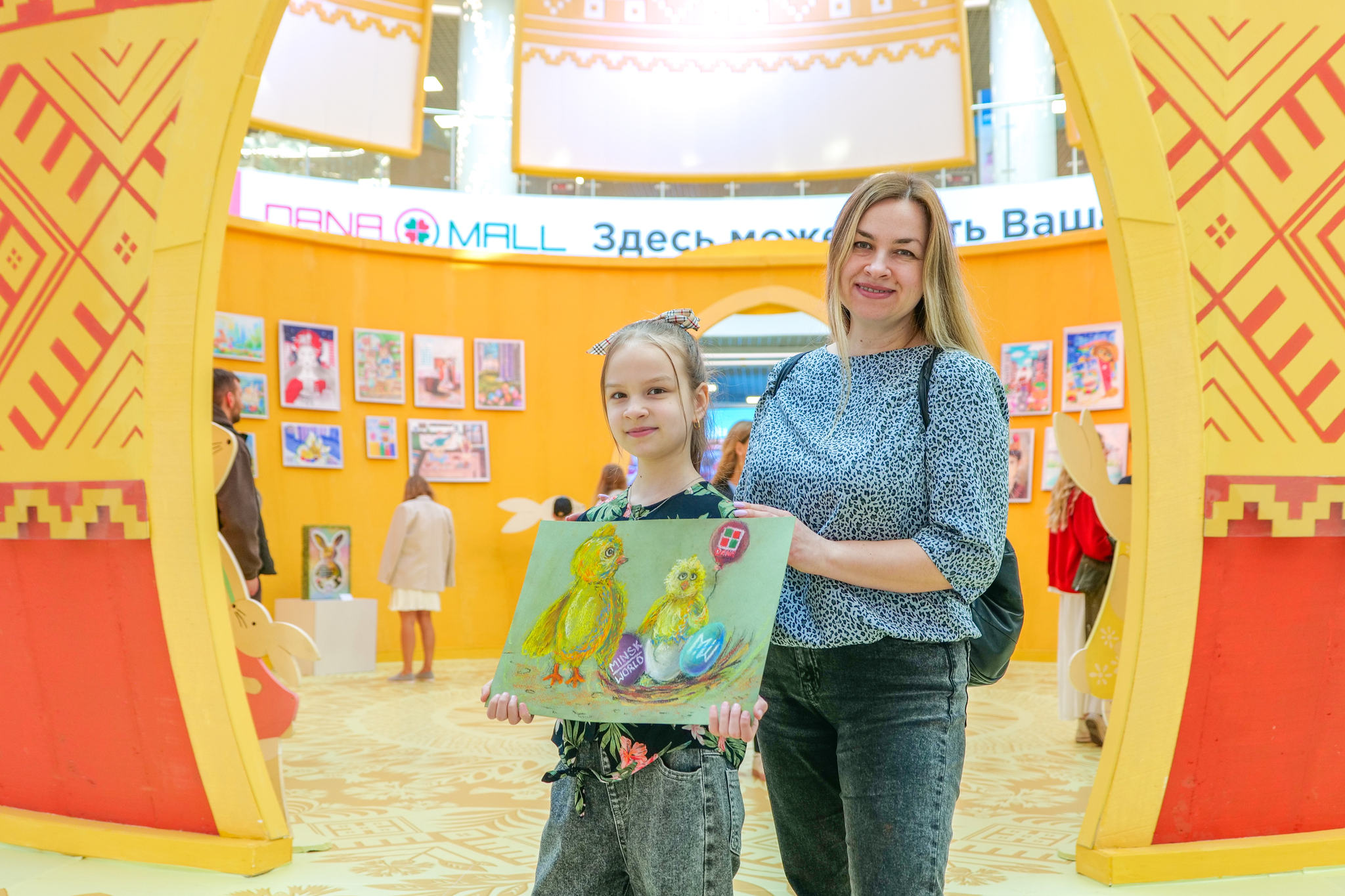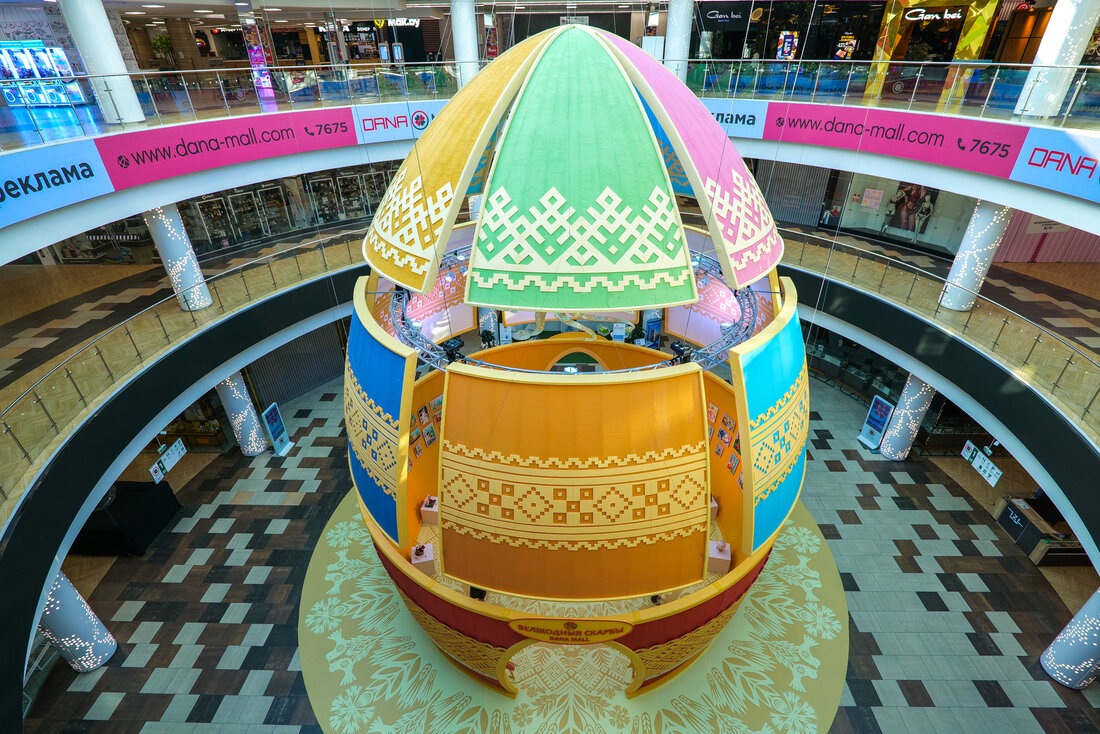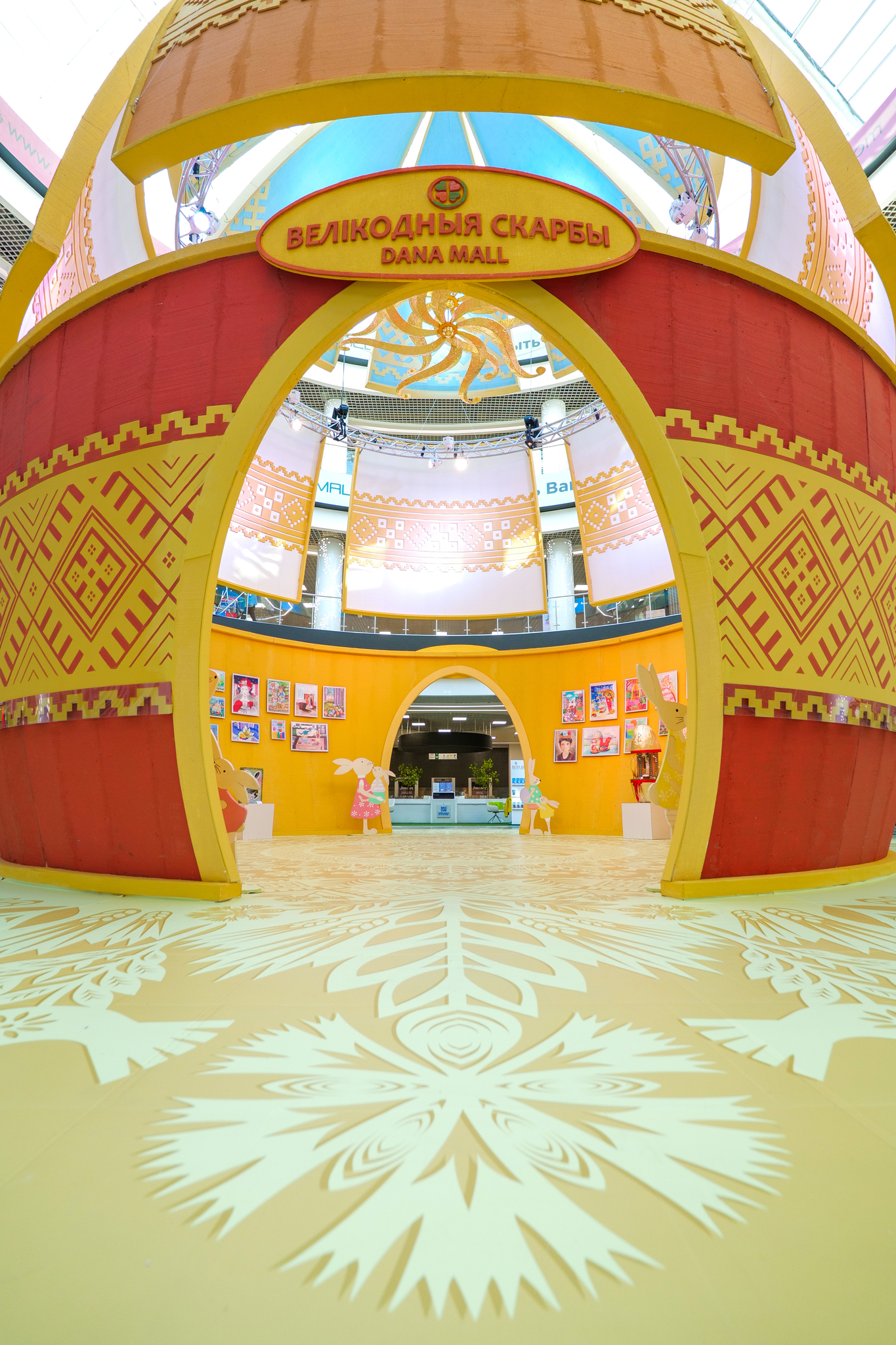Внутри праздничной инсталляции находятся самые креативные работы конкурса «Пасха в Minsk World». Работы детей и подростков, присланные из самых разных уголков Беларуси за последние десять лет, задают особую праздничную атмосферу и красноречиво говорят нам о том, насколько богата талантами наша белорусская земля.