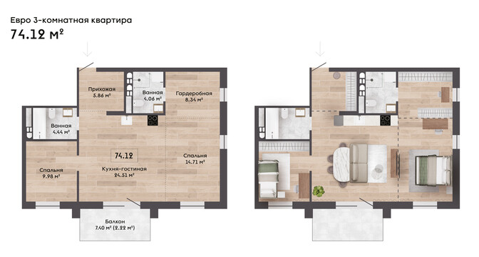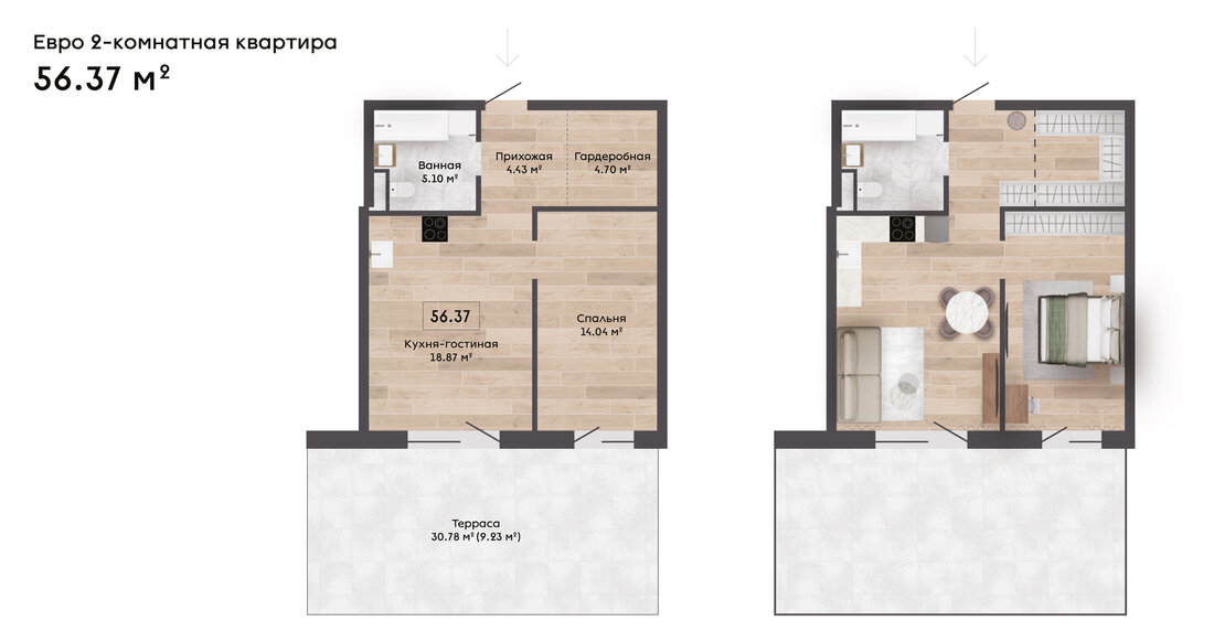 В доме спроектированы 3-метровые потолки, которые в мансардных квартирах достигнут 7,63 метра. Все квартиры на первом этаже получат собственные террасы площадью от 22 до 30 квадратов.