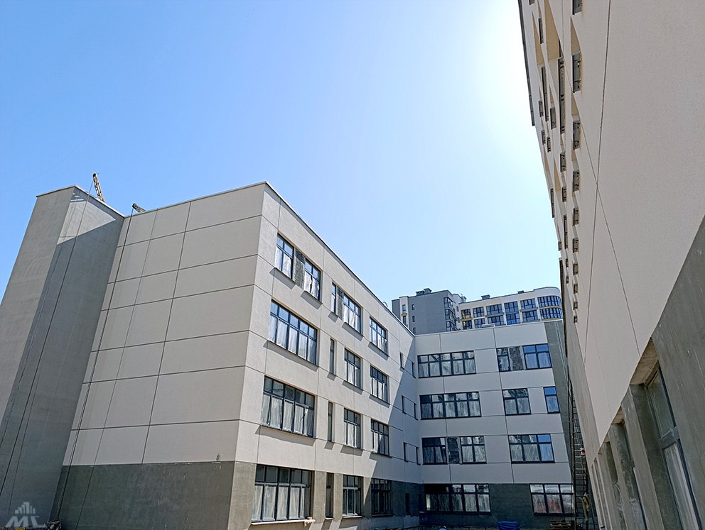 Над школой в Минск-Мире работают 150 человек. Строители начинают заниматься фасадом. Также продолжаются внутренние работы. В разгаре монтаж подвесных потолков и гипсокартонные зашивки. Телеграм-канал «ГПО «Минскстрой» рассказал, на каком этапе находится стройка.