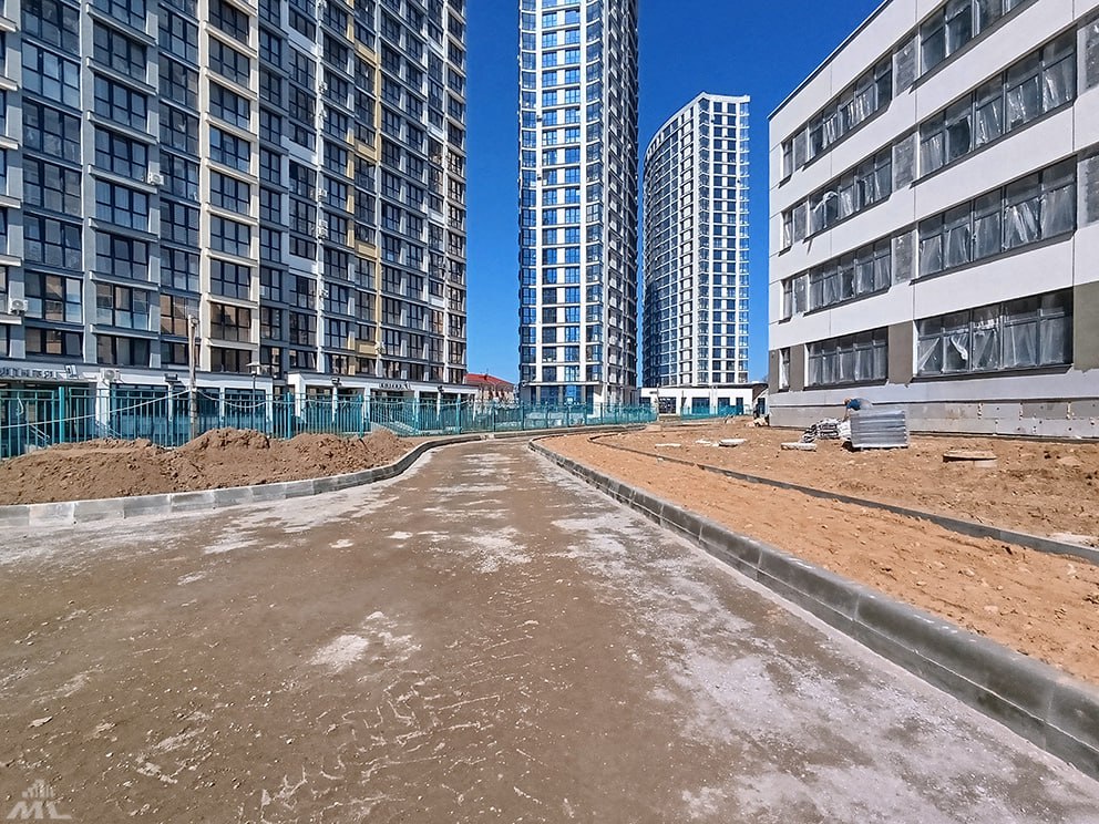 Активизировалось и благоустройство территории. Выполняется отмостка вокруг школы и бассейна, установка дорожных бортов, готовится основание под заезды, площадки и тротуарные дорожки. В мае начнут обустраивать стадион и спортплощадки.