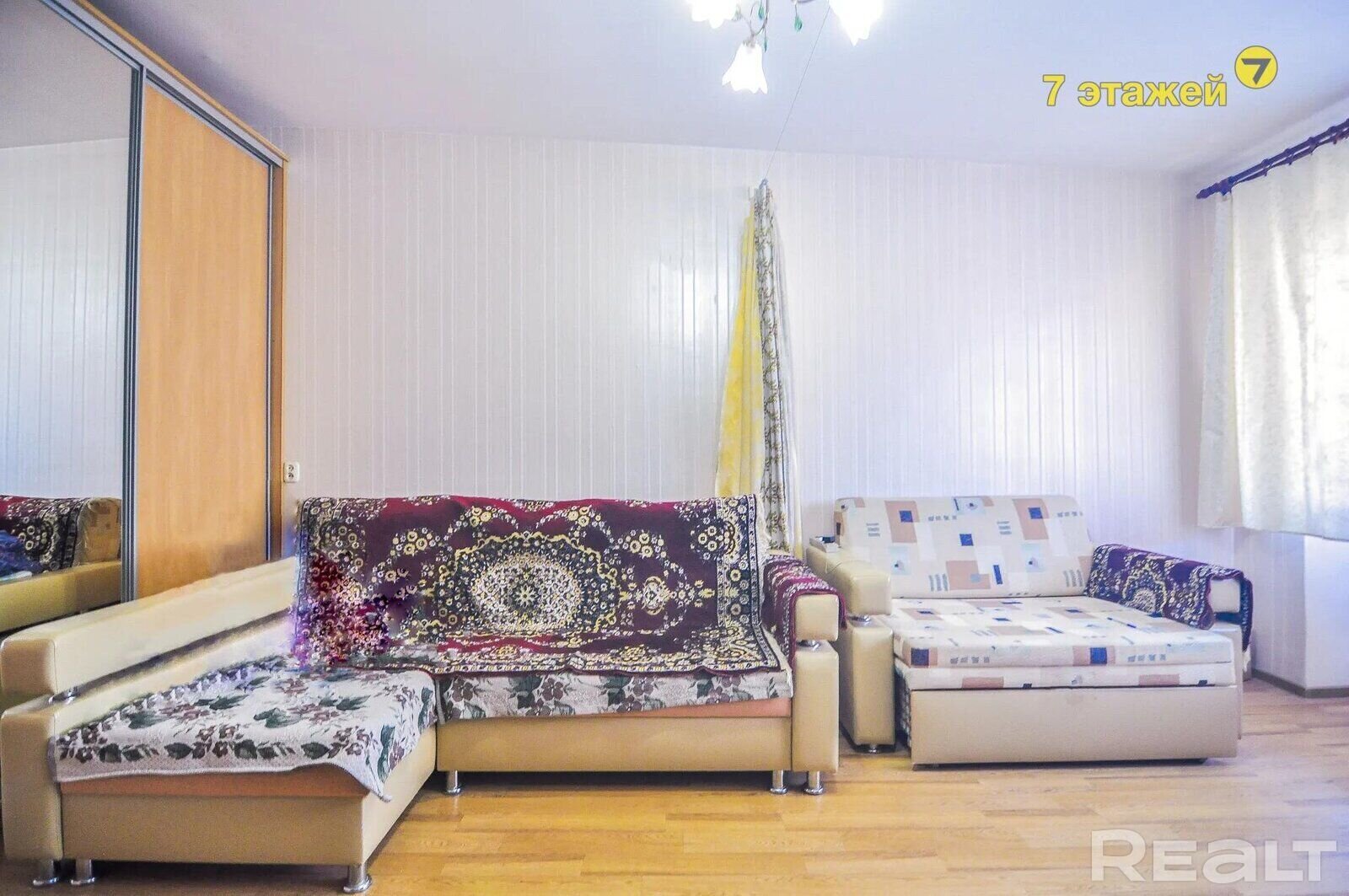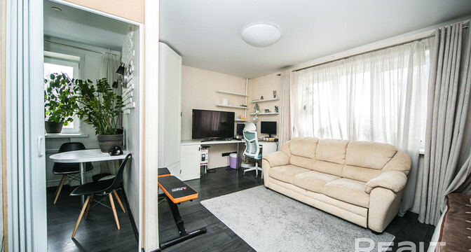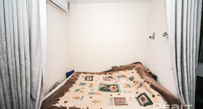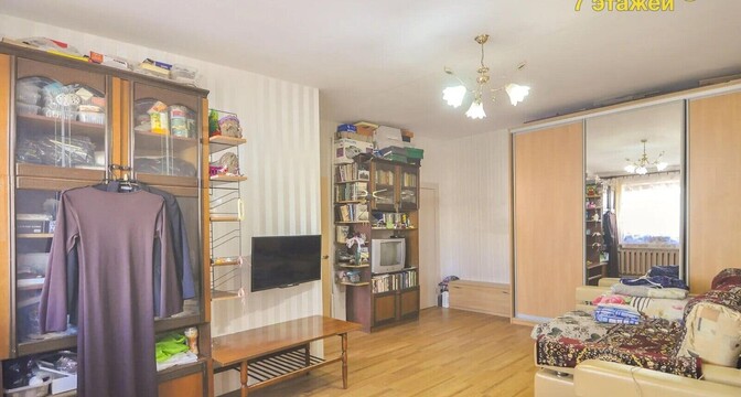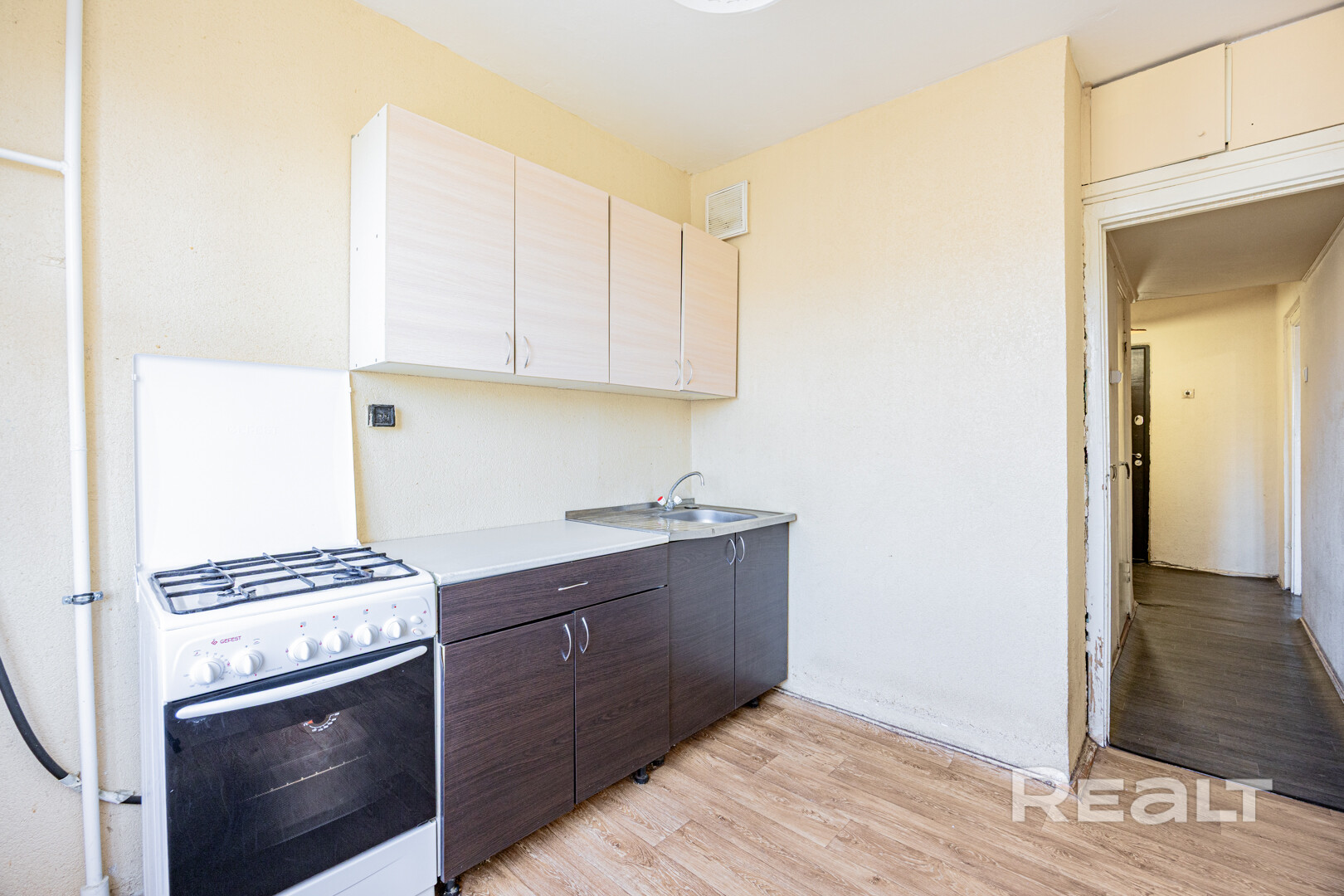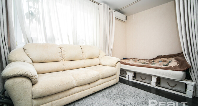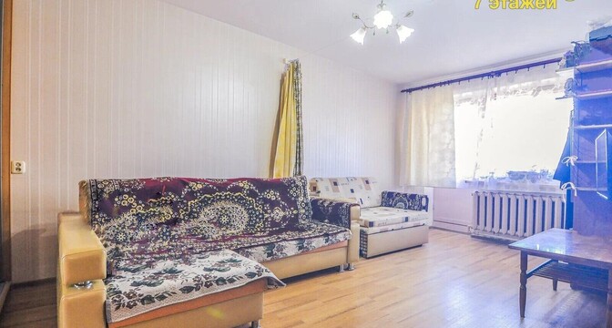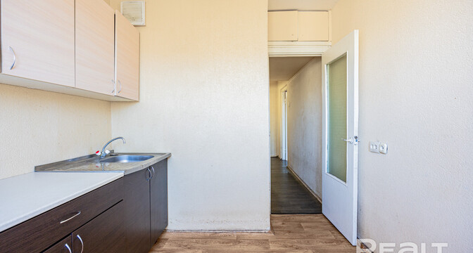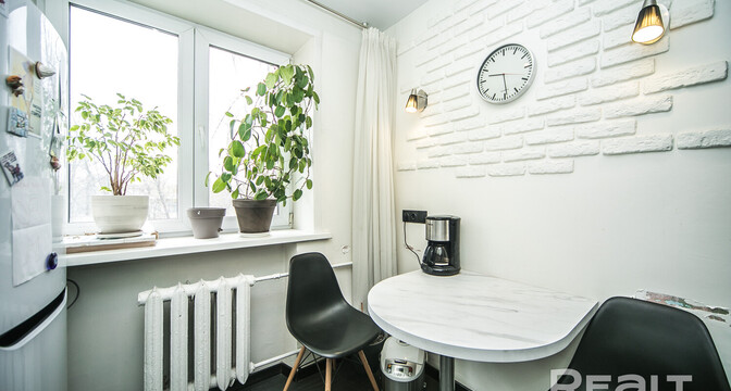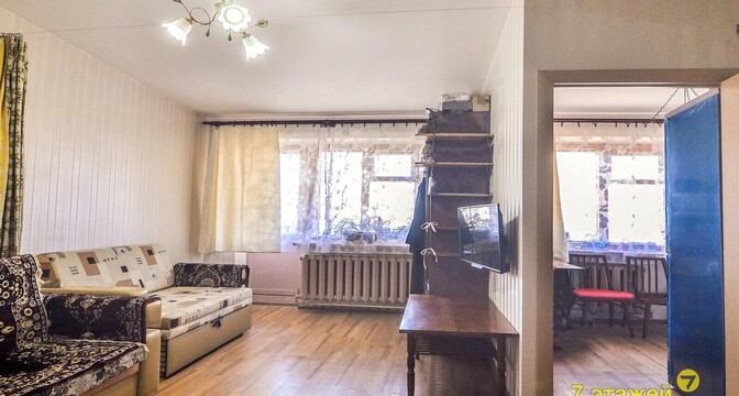 Последняя квартира в подборке находится в девятиэтажке 1981 года на Берута, 6/1. Она располагается на седьмом этаже и занимает 34,7 м². Площадь кухни — 6,9 м². Дом после капремонта.