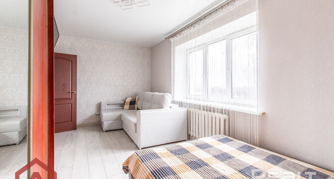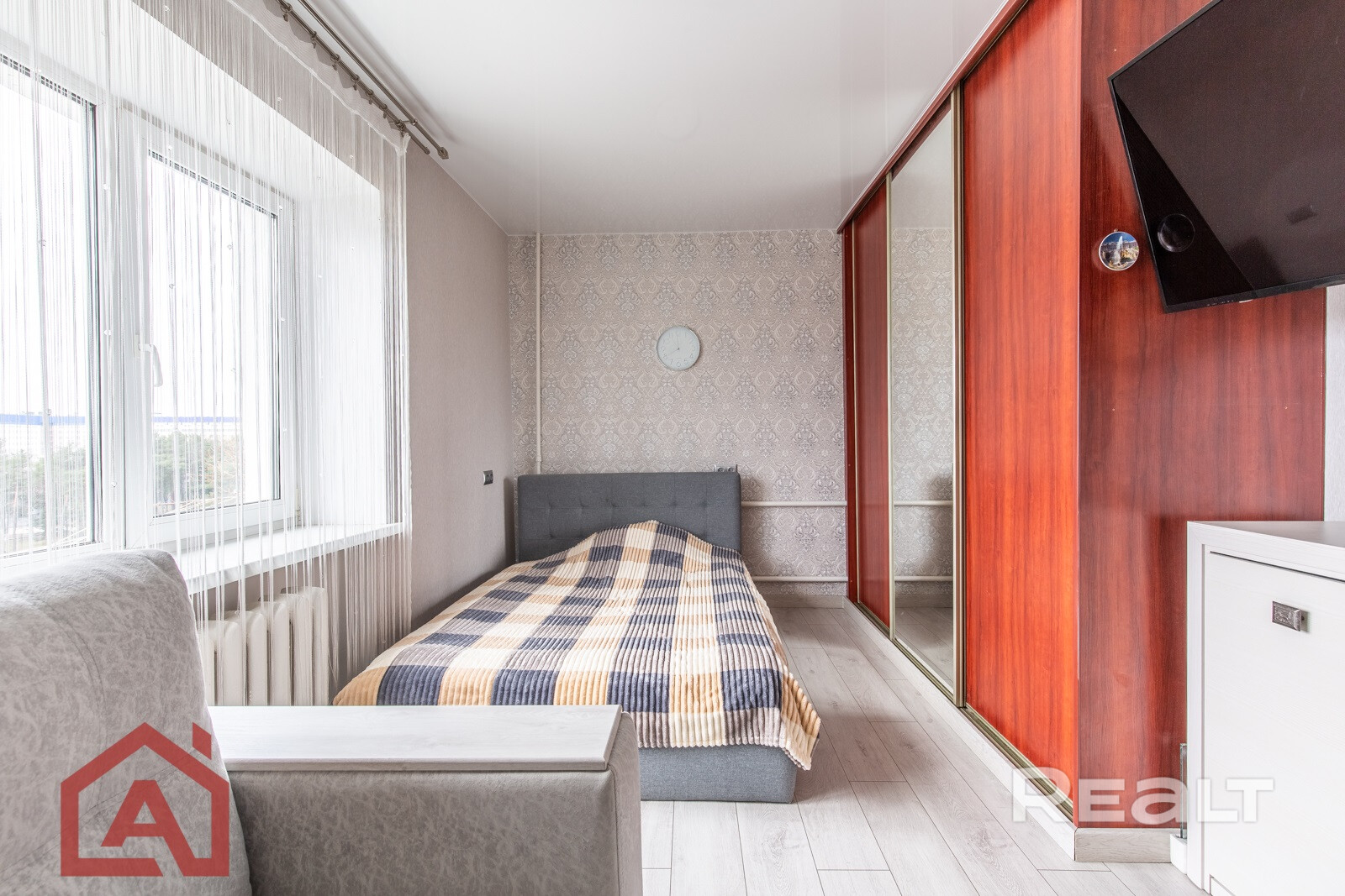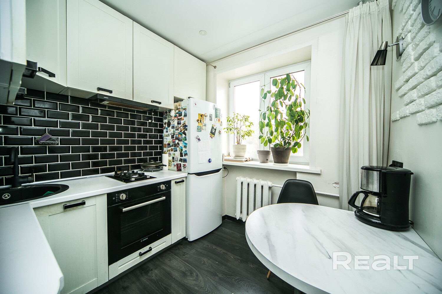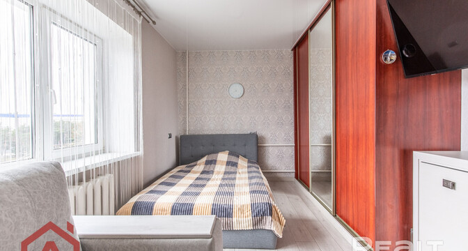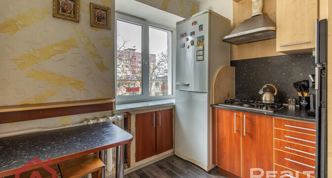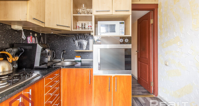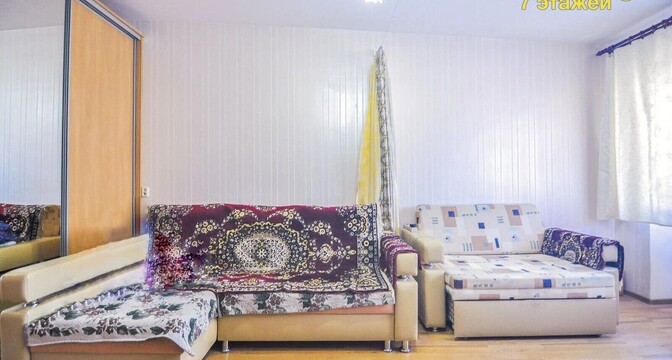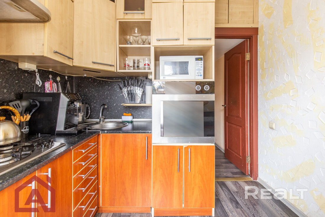 Последняя квартира в подборке находится в девятиэтажке 1981 года на Берута, 6/1. Она располагается на седьмом этаже и занимает 34,7 м². Площадь кухни — 6,9 м². Дом после капремонта.