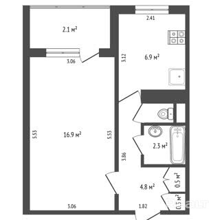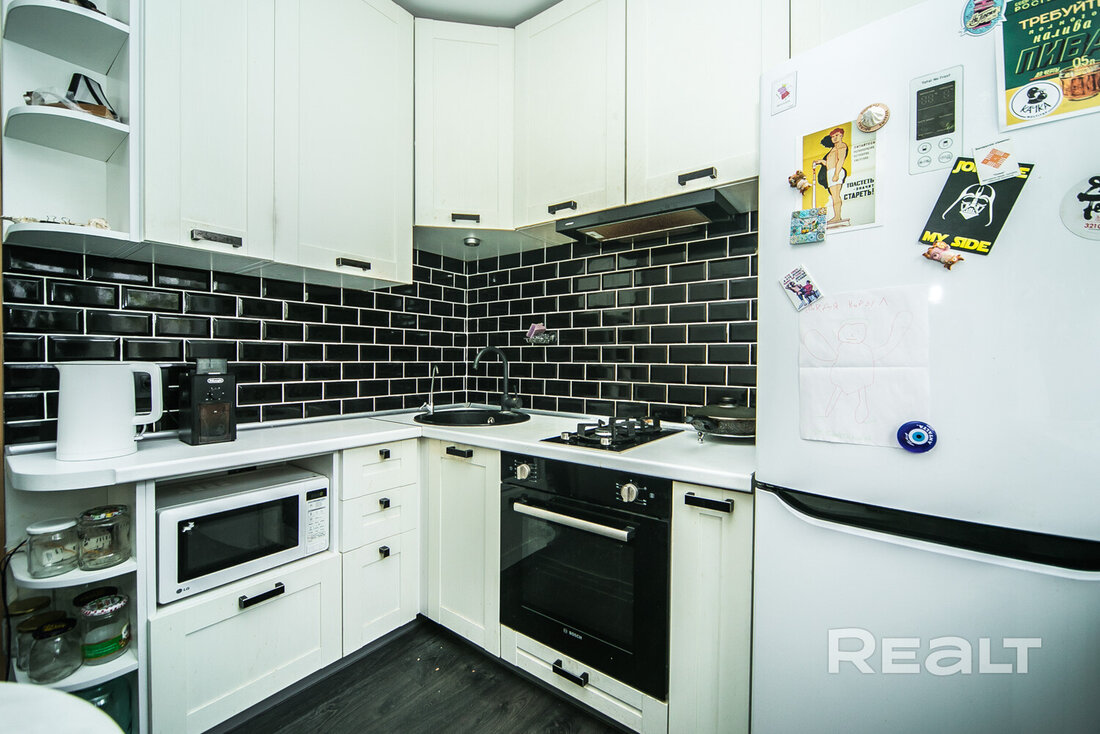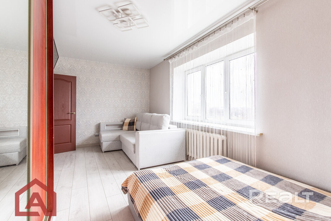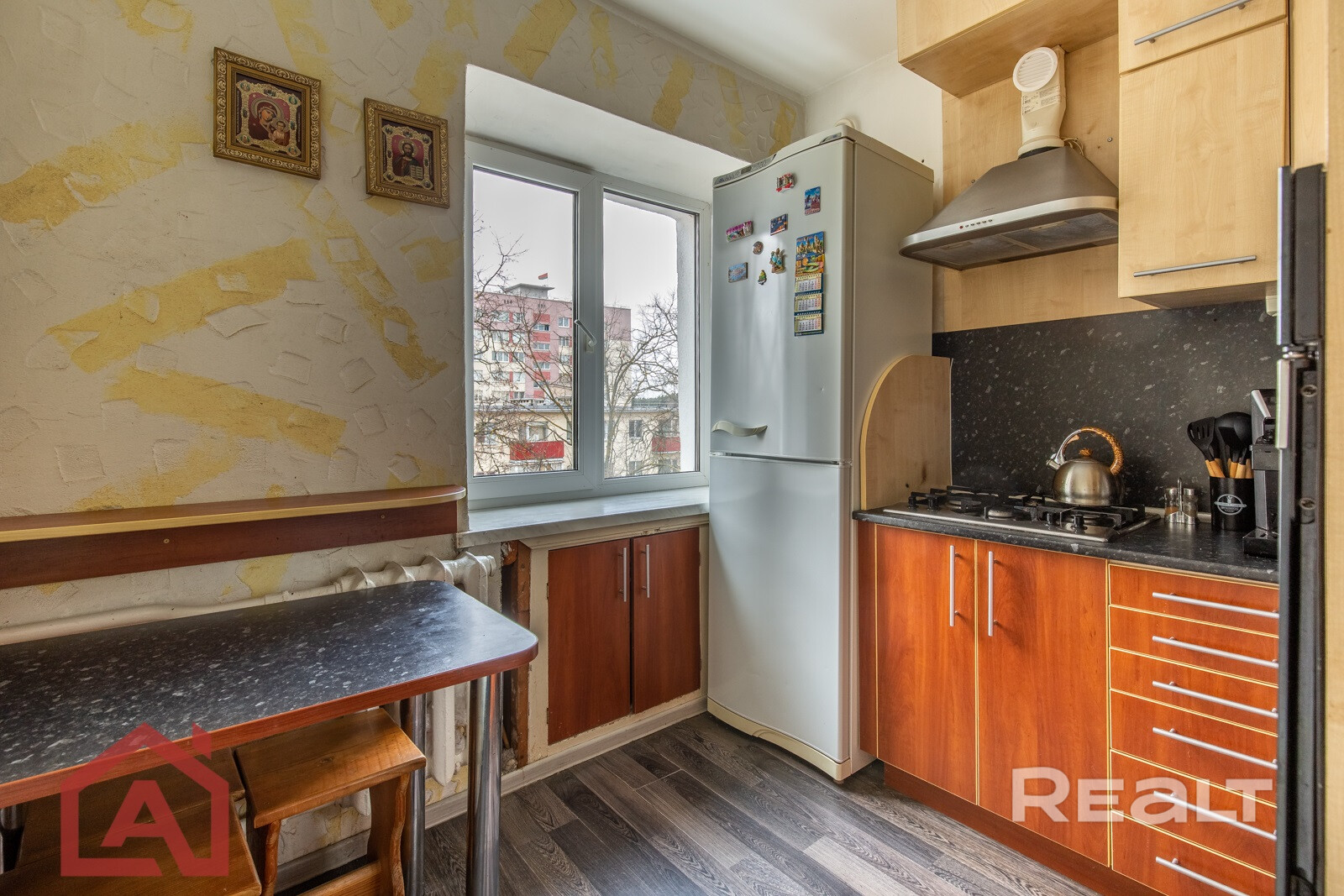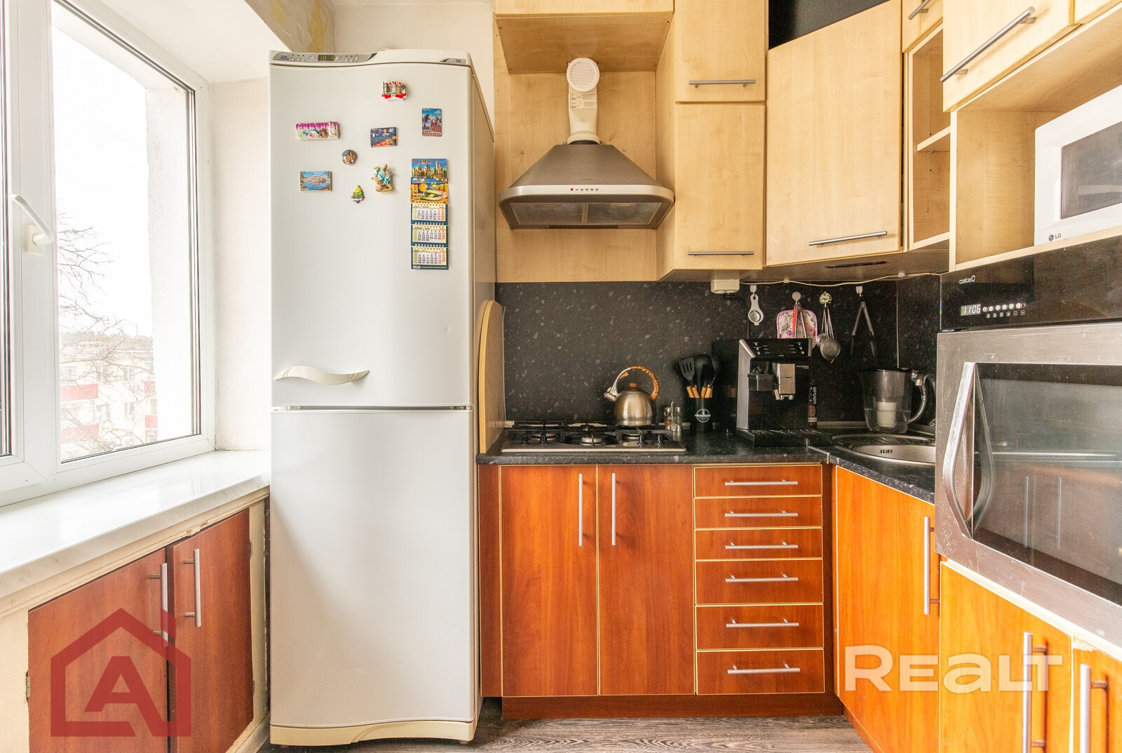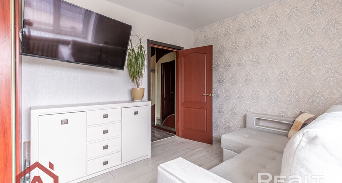Последняя квартира в подборке находится в девятиэтажке 1981 года на Берута, 6/1. Она располагается на седьмом этаже и занимает 34,7 м². Площадь кухни — 6,9 м². Дом после капремонта.