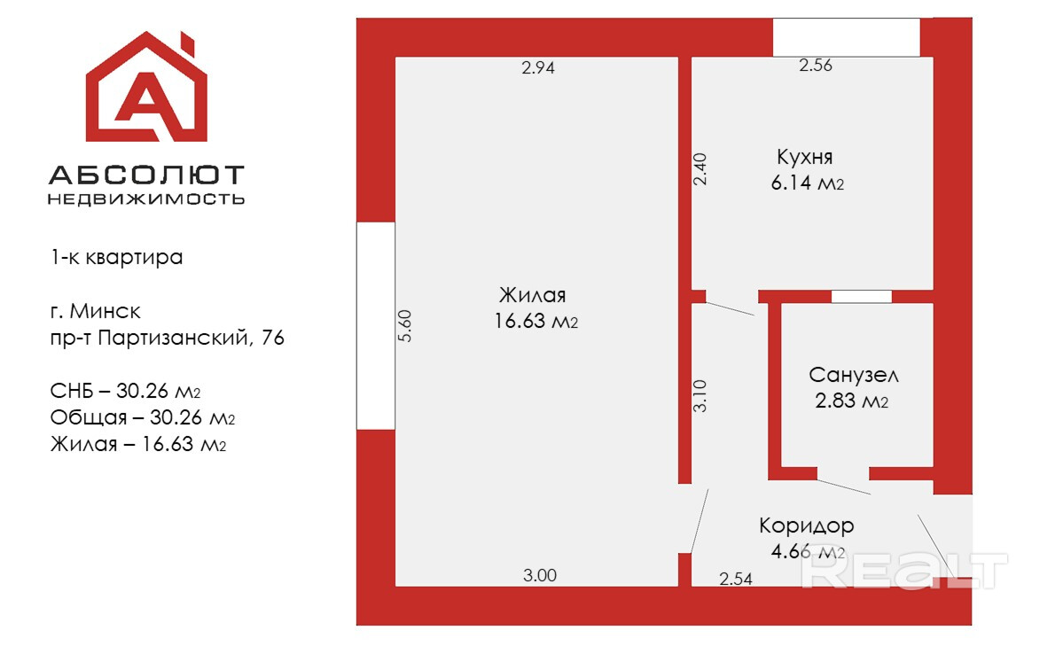 Квартира стоит 59 900 долларов. Цена квадратного метра — 1 980 долларов.