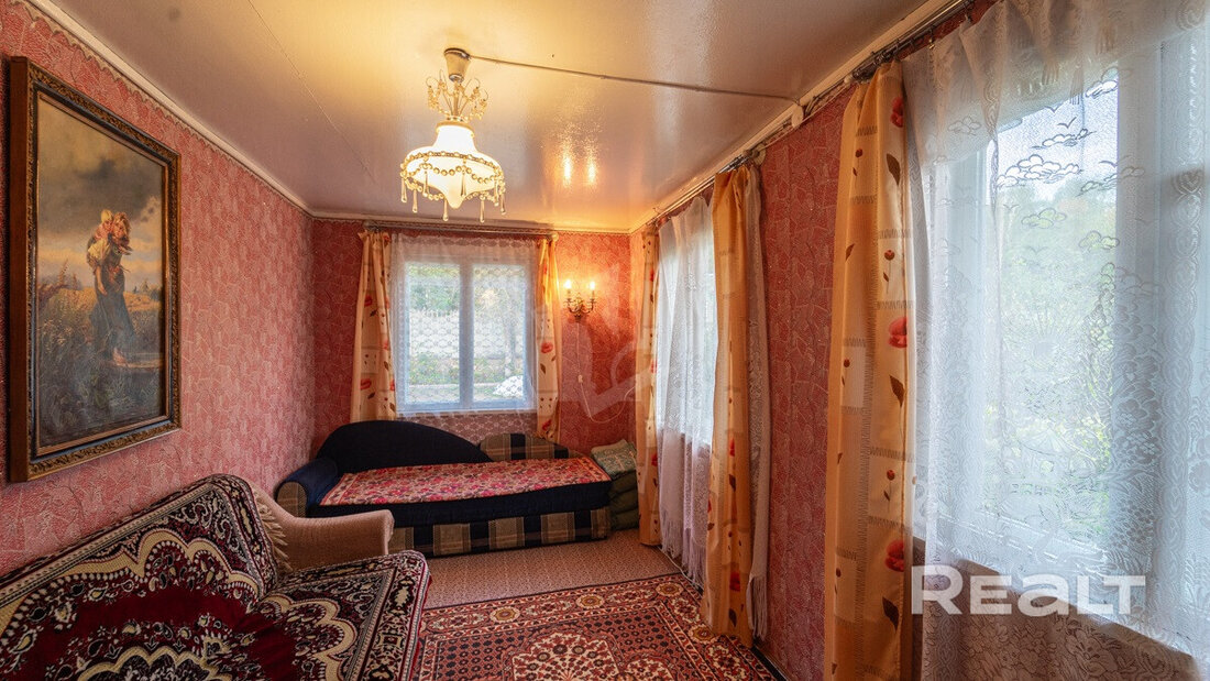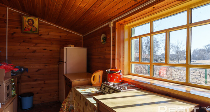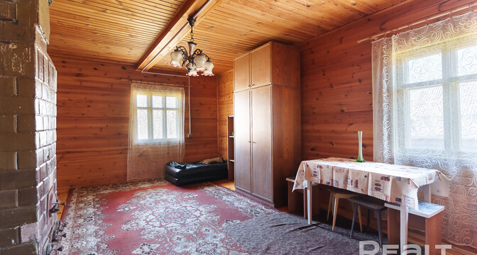 Домик в агрогородке Городьки Воложинского района. Дорога на машине от Минска займет около часа, а до Воложина — 15 минут. Рядом есть автобусная остановка и железнодорожная станция. В ста метрах от дома — озеро, а еще неподалеку протекают реки Буянка и Западная Березина. Там часто собираются порыбачить, а еще сплавляются на байдарках.