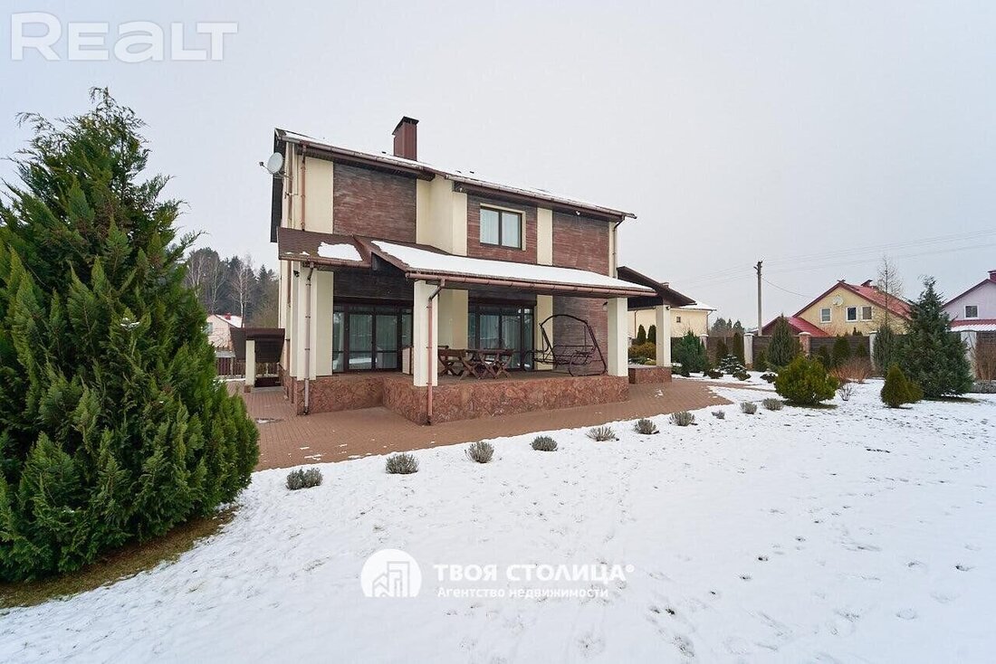 Вот вариант попросторней: два жилых этажа и цоколь, 268,8 м2. Участок рядом с лесом, 8,4 сотки.