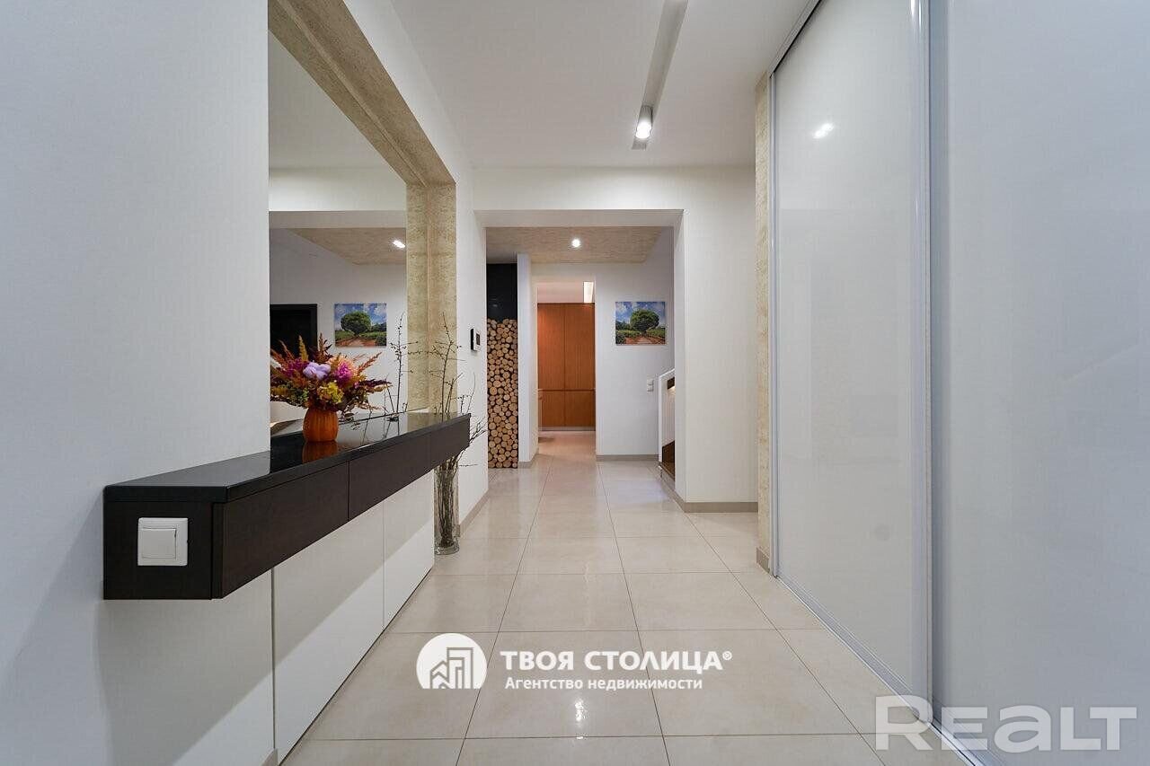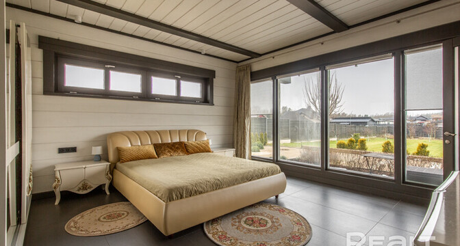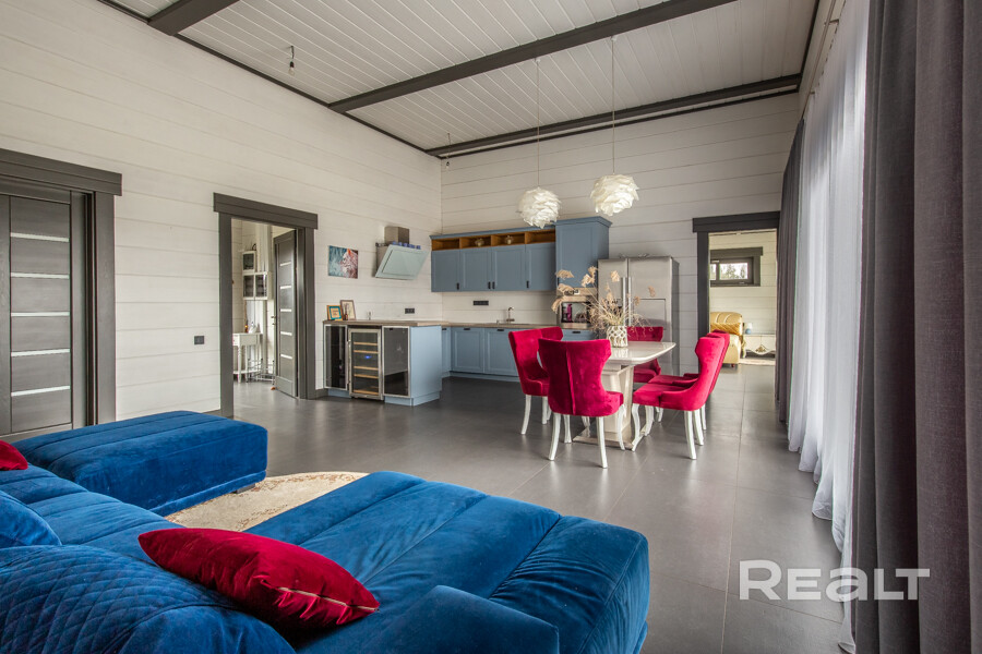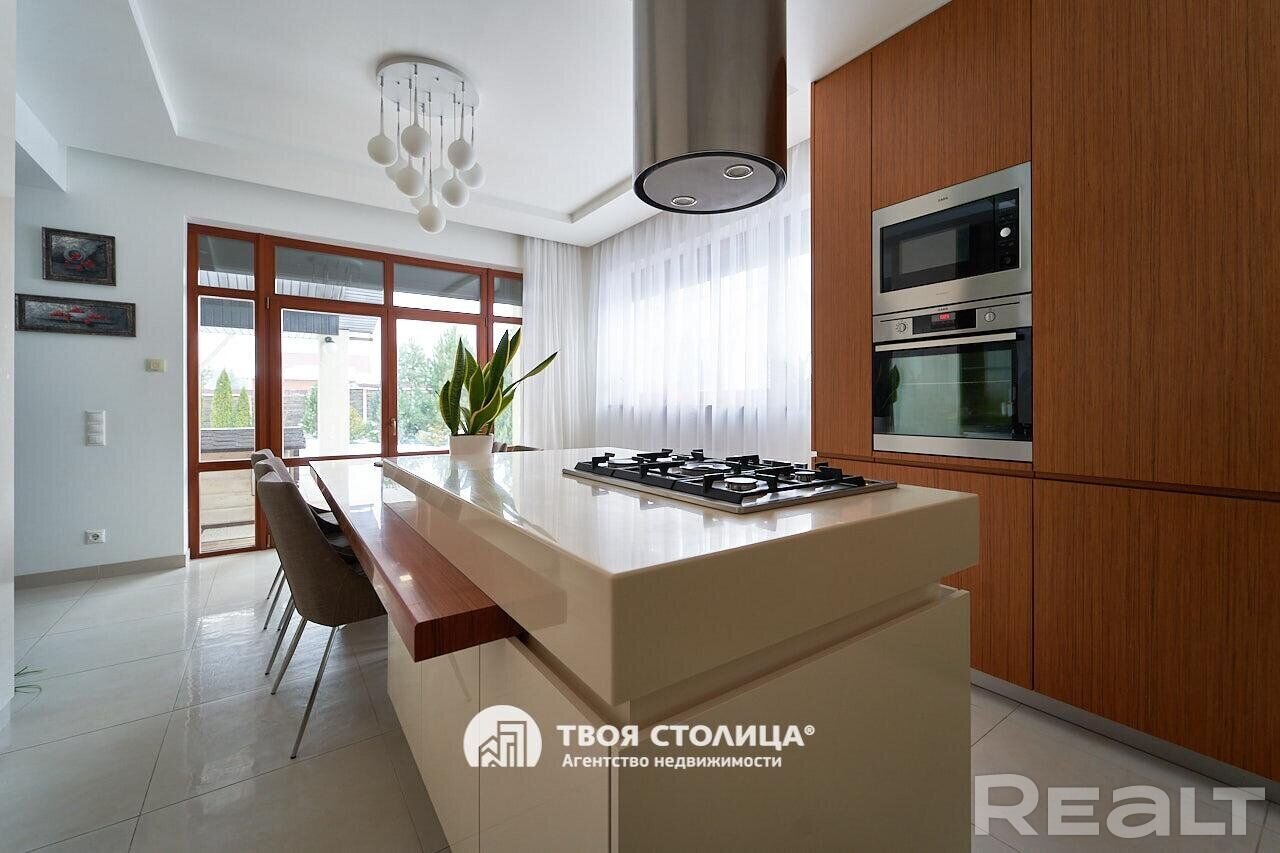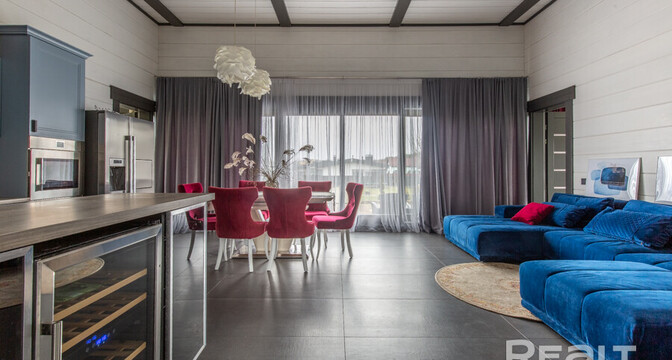 В доме выполнен современный ремонт по дизайнерскому проекту. Комнаты обставлены стильной мебелью и дорогой бытовой техникой. Есть камин на дровах.
