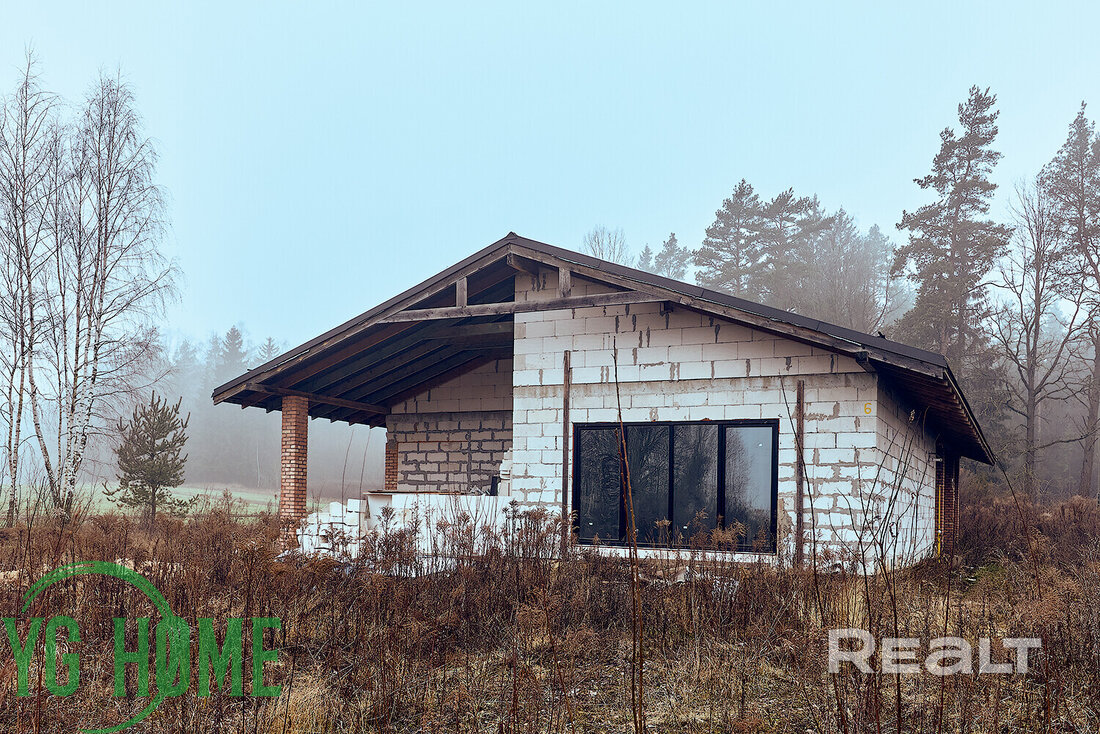 Внутри сделана черновая отделка, разведены коммуникации. Участок 15 соток, без благоустройства. И это самый дешевый вариант, кстати.