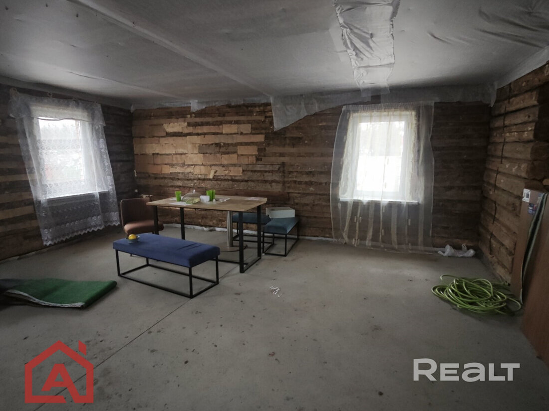 Дешевле всех стоит деревянный дом 1988 года постройки, обложенный кирпичом на Центральной улице. По фото видно, что владелец начал реконструкцию — внутри стены освободил от старой отделки, залил бетонную стяжку, провел водопровод и канализацию, установил современные окна.