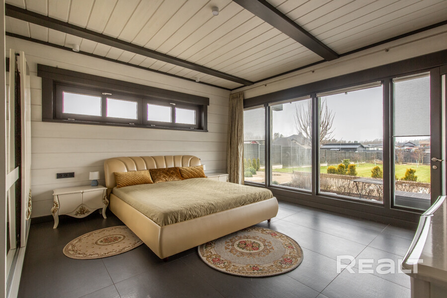 Общая площадь — 164,8 м2. Планировка такая: три спальни, просторная кухня-гостиная, два санузла, две гардеробные, котельная. Участок почти 15 соток. За все это просят 134 900 долларов.