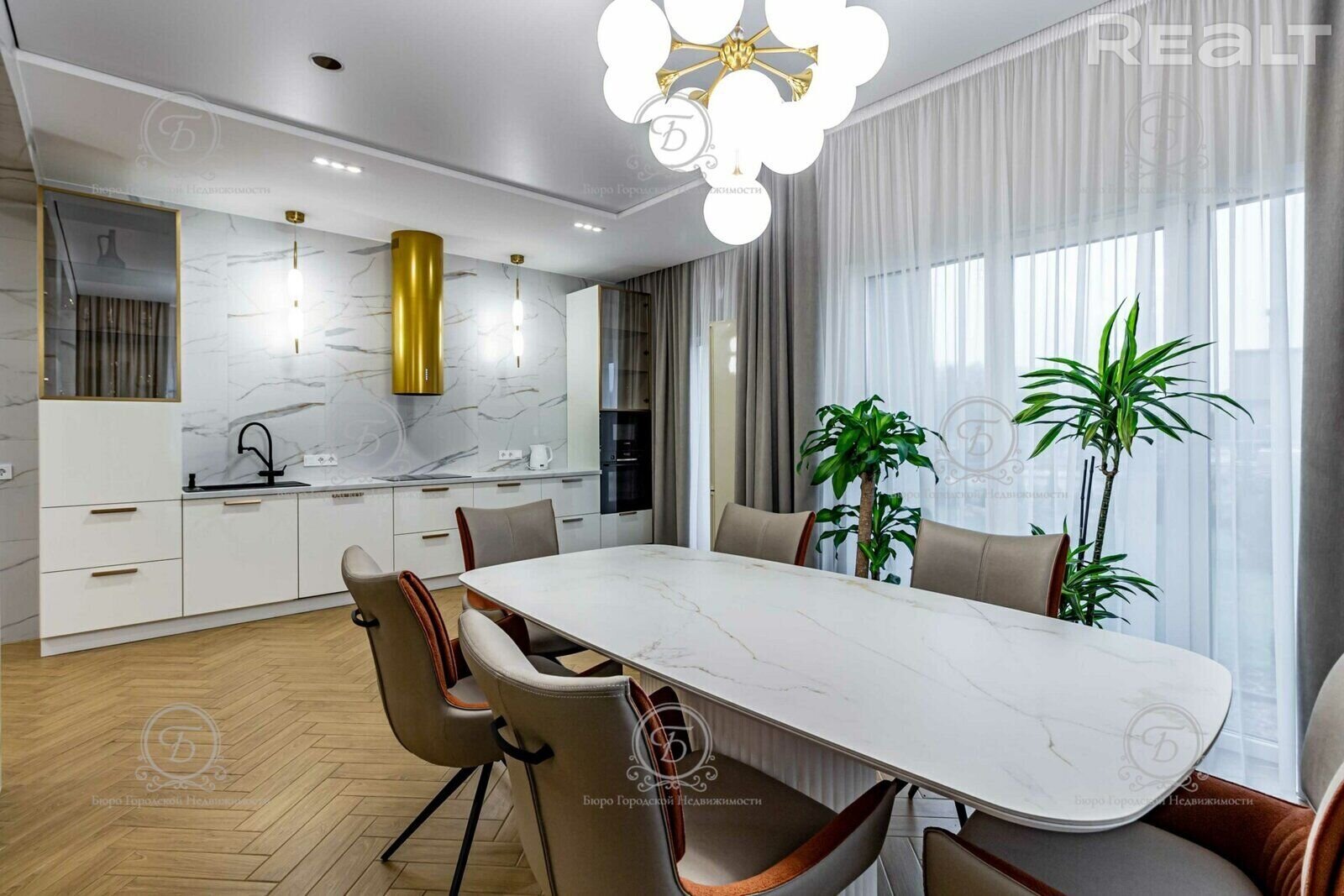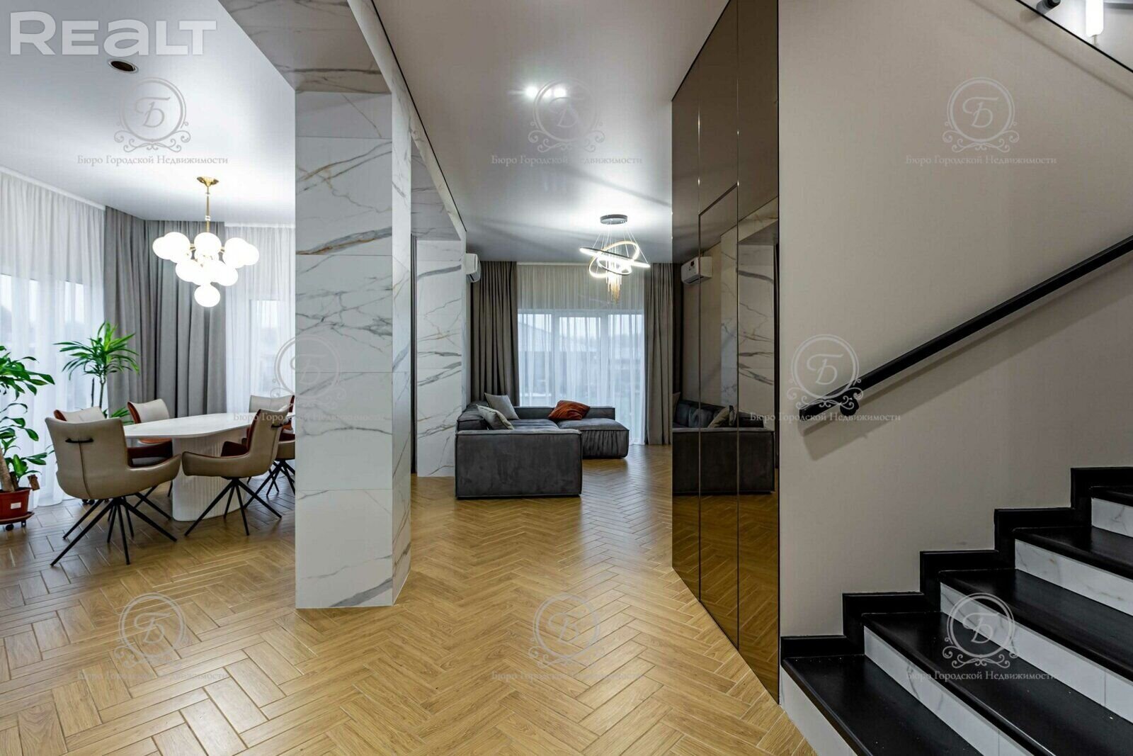 Варианты все интересные и все современные. Вот, например, дом на 324 м2 под чистовую отделку, с газовым отоплением и всеми остальными коммуникациями — за него просят 159 000 долларов.