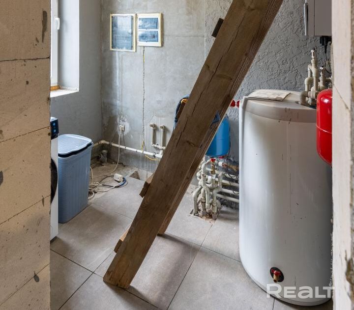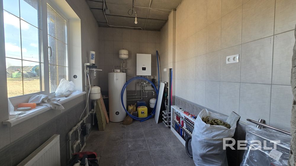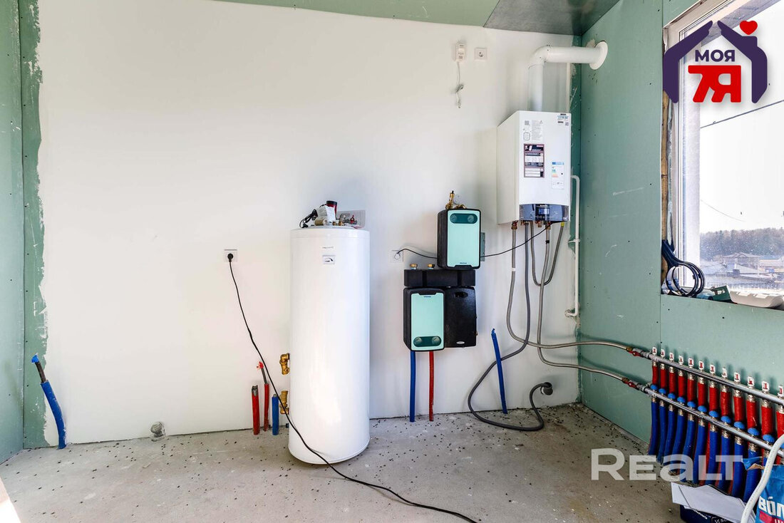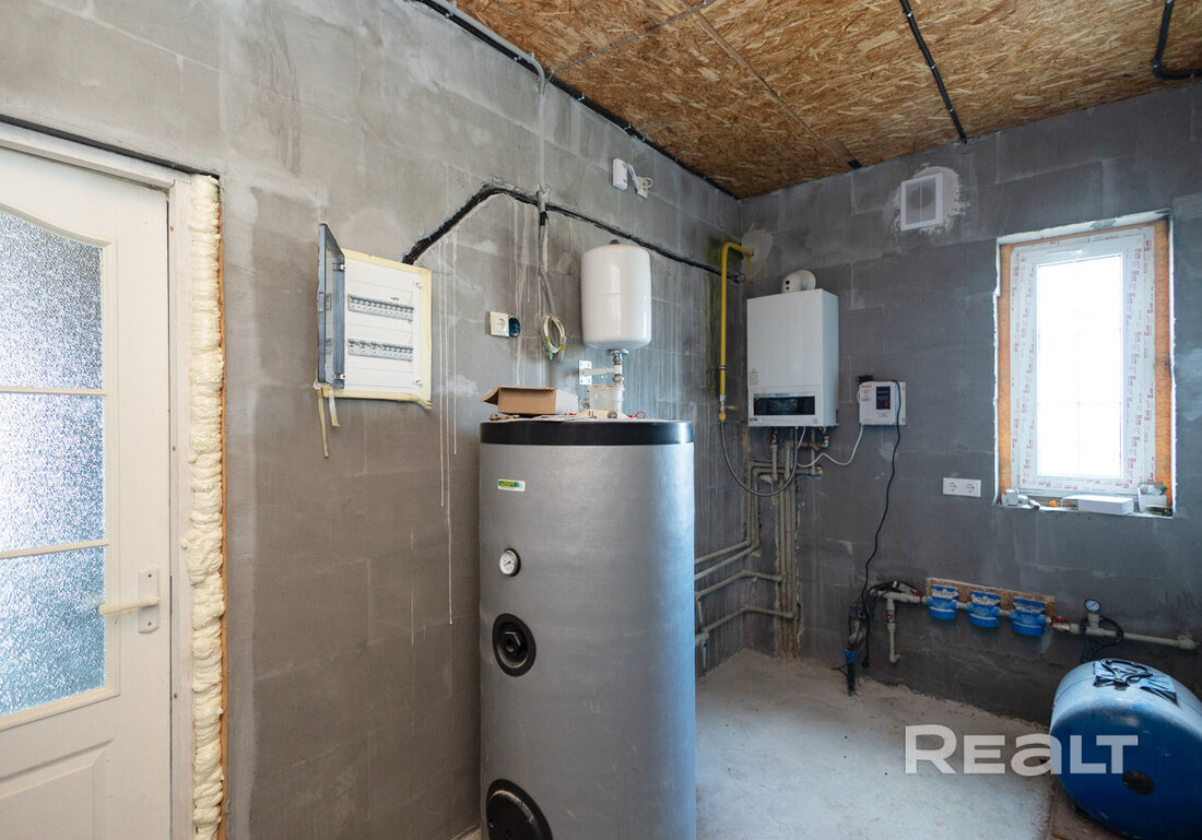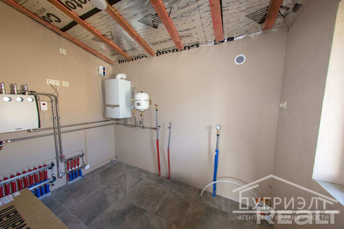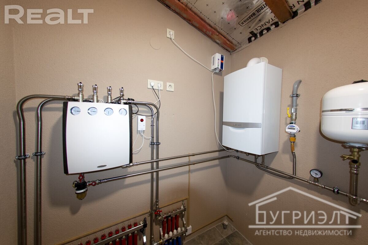 В доме разведены все необходимые коммуникации, включая трубы водоснабжения и отопления и тёплые полы, установлен конденсационный котёл, электрика разведена.