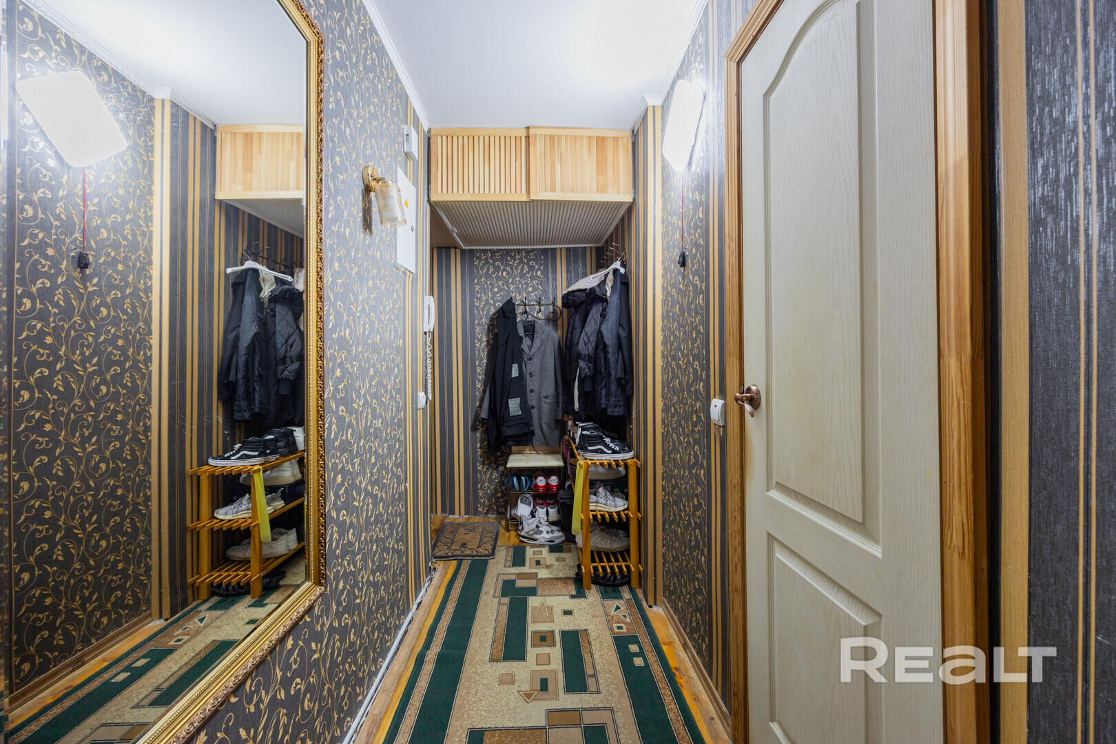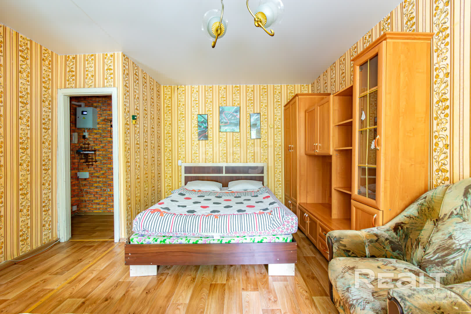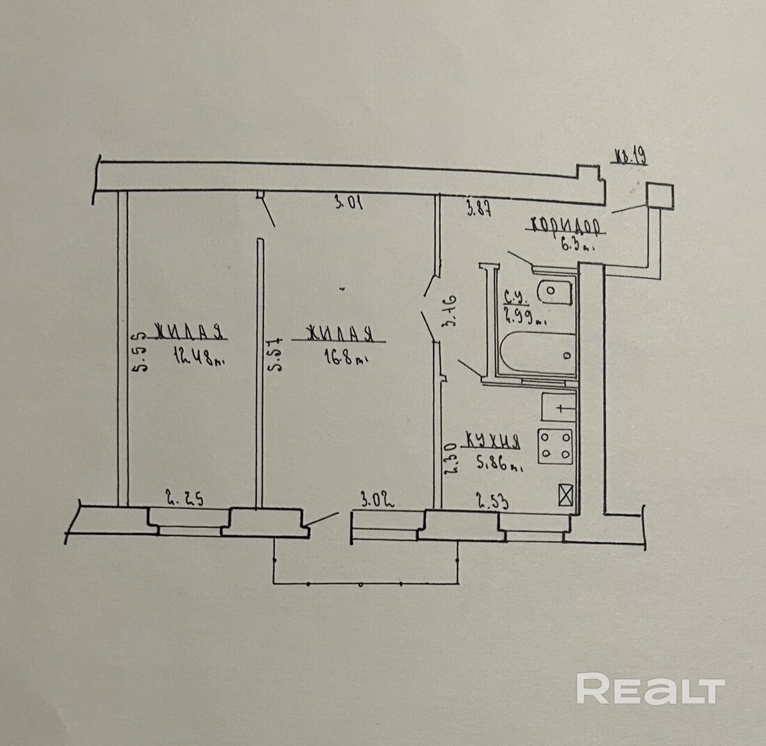 Квартира нуждается в ремонте. Здесь две изолированные комнаты, в коридоре есть небольшая ниша под шкаф.