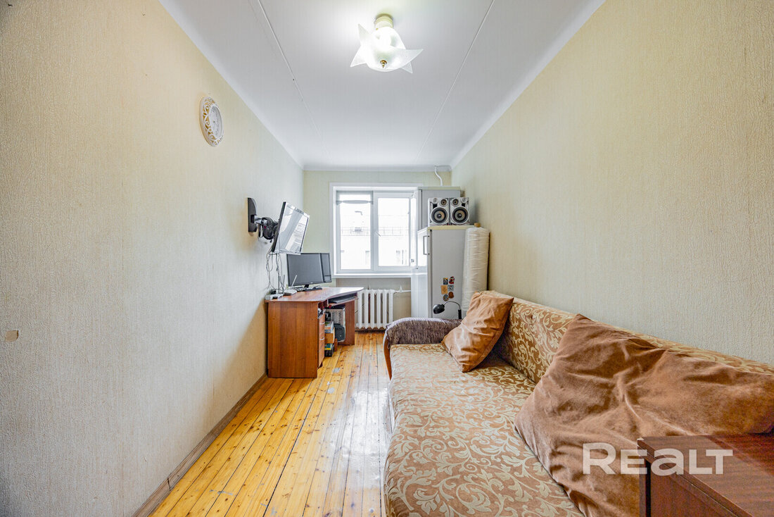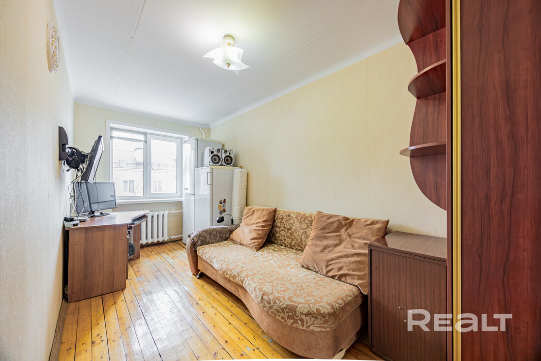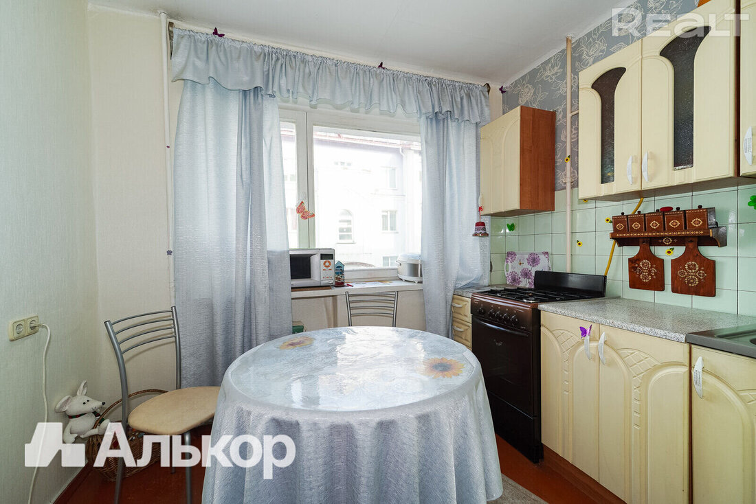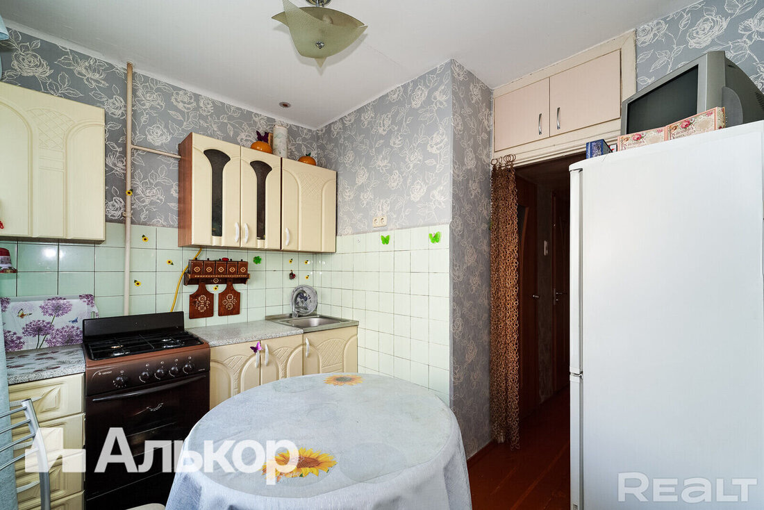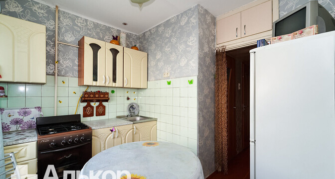 Еще одна квартира продается в пятиэтажке 1970 года на проспекте Независимости, 141/2. Она располагается на последнем этаже. Ее площадь — 39 м², кухня занимает 6 квадратных метров.