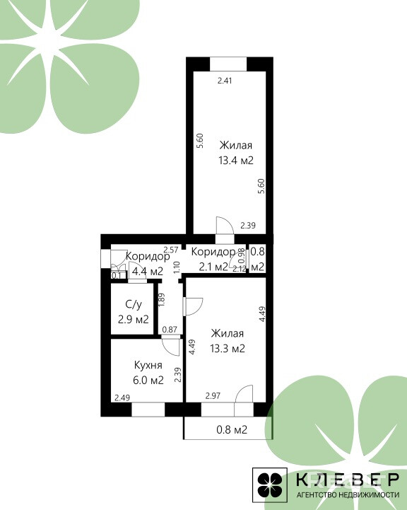 Стоимость квадрата — 1 368 долларов. Цена квартиры — 59 900 долларов.