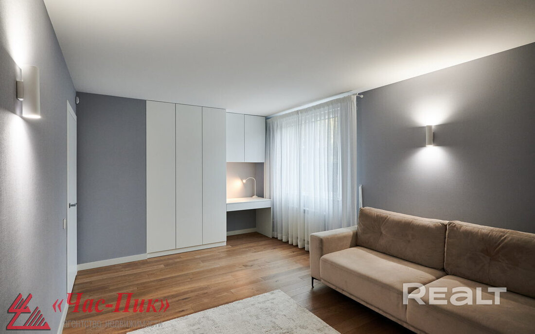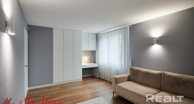 Интерьер в современном стиле, с отделкой высокого уровня. Имеется вся необходимая мебель и бытовая техника.