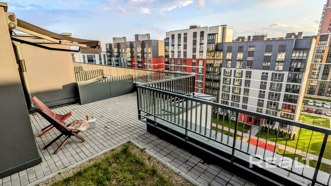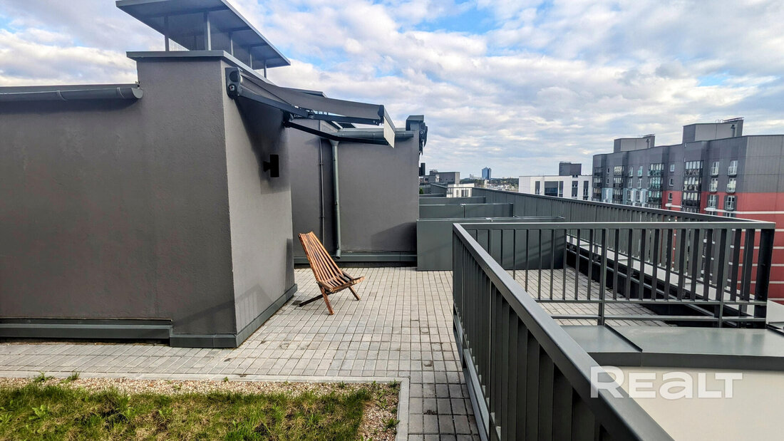 Ну, а изюминкой квартиры является собственная терраса на крыше площадью более 20 квадратных метров. Тут можно оборудовать зону отдыха и наблюдать за рассветами-закатами.