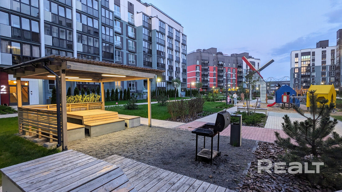 В шаговой доступности от дома находится центральная площадь с фонтанами, 4 ресторана, 3 кафе, спортзал. Рядом с домом есть гостевая автомобильная стоянка с зарядными станциями, а крытый многоуровневый паркинг находится в соседнем здании.