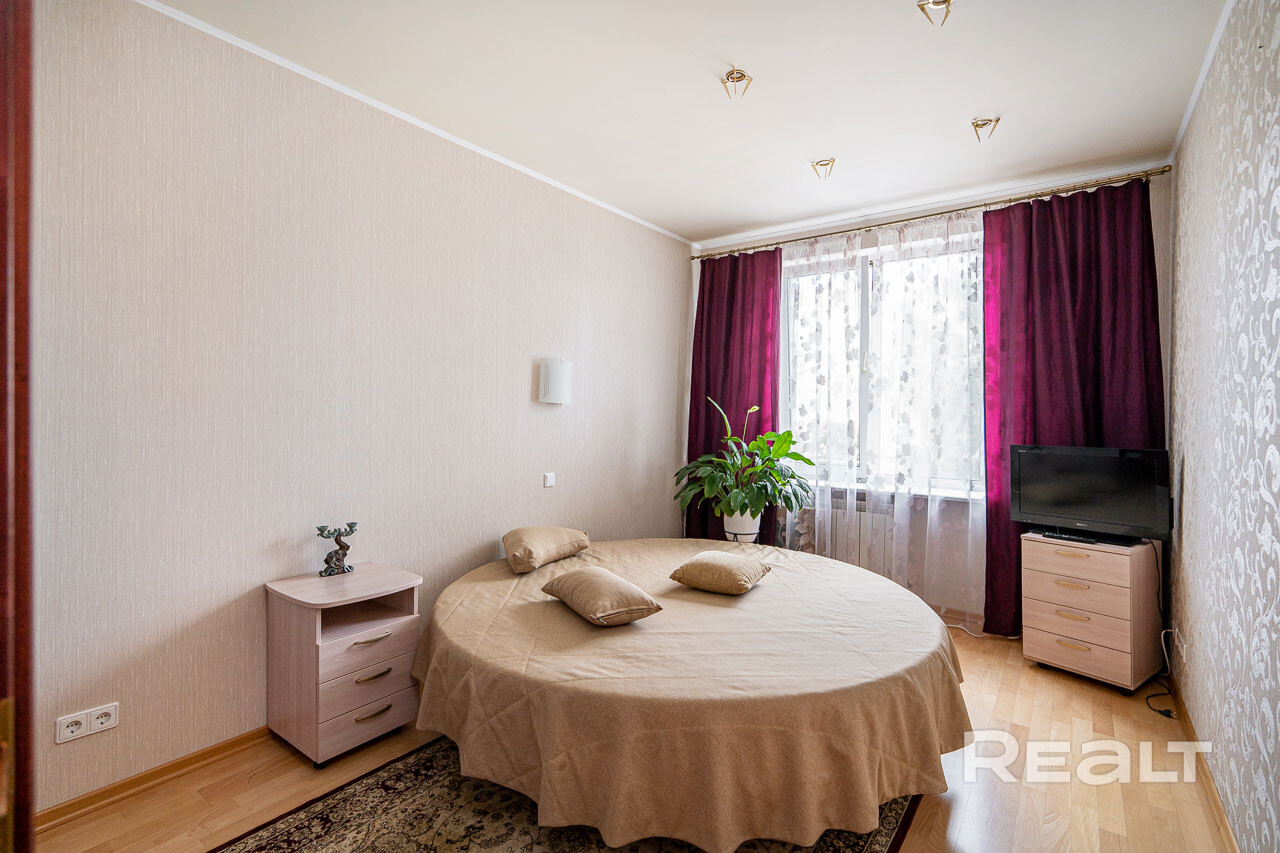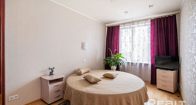 В квартире сделан качественный ремонт, есть мебель и техника, тут предусмотрено 2 санузла и один круглый балкон. Стоимость — 192 тысячи долларов (1624 доллара — за метр).