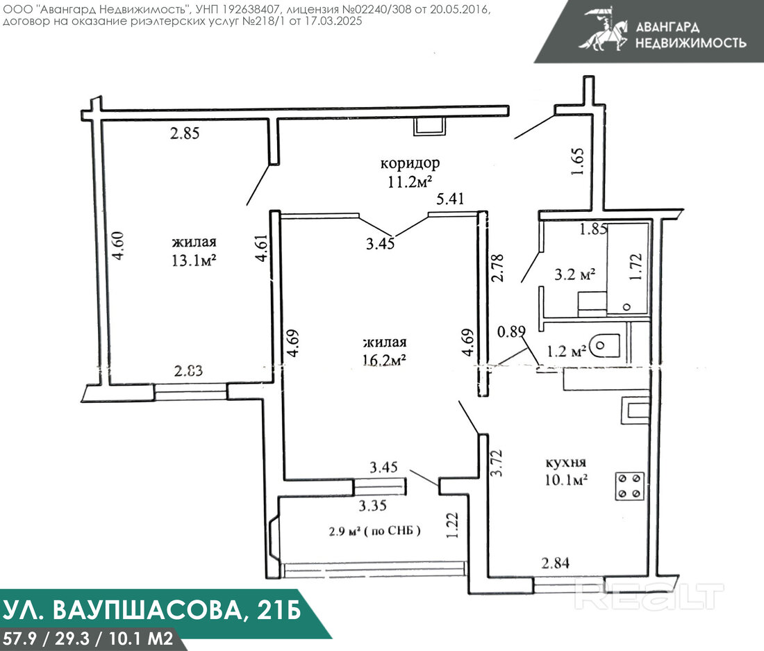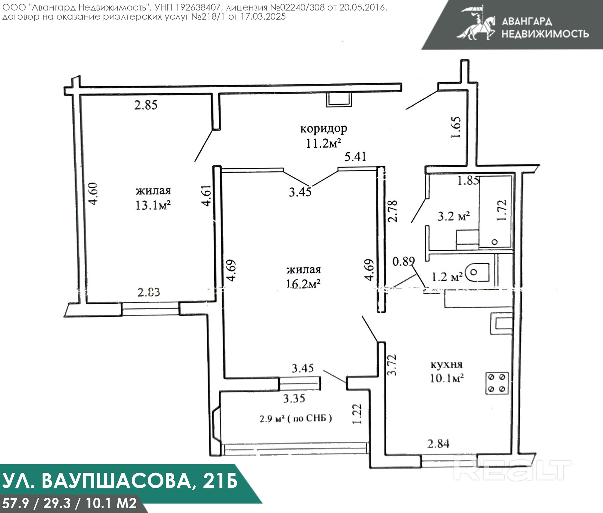 Квартира продается и в десятиэтажке на Ваупшасова, 21/Б. Дом возвели в 2009 году. Двушка располагается на шестом этаже. Ее площадь составляет 57,9 м², а размер кухни — 10,1 м².