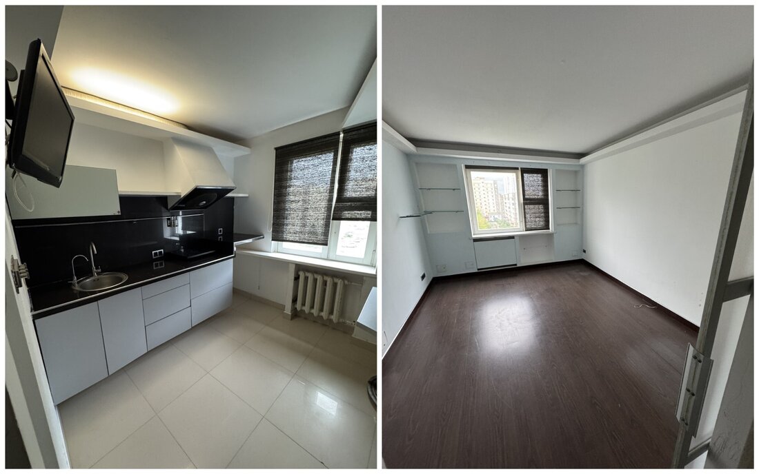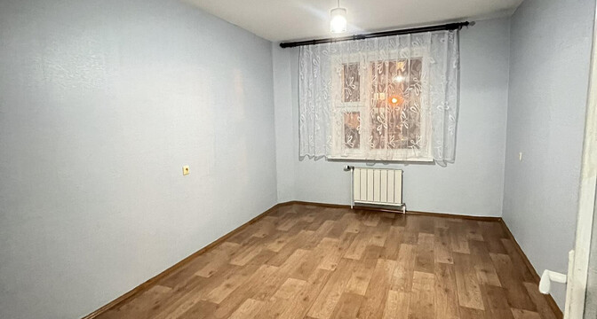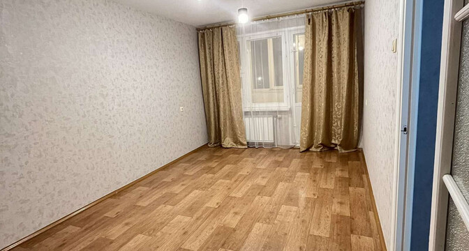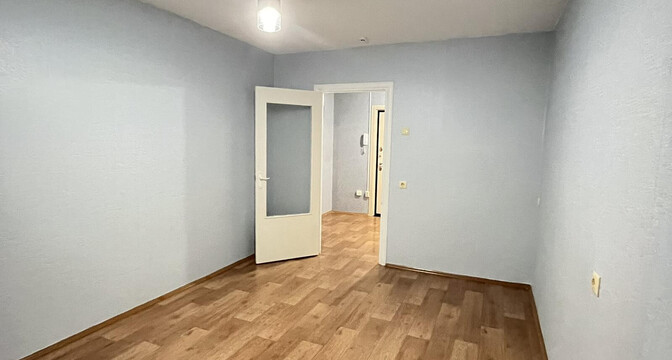 Квартира с двумя изолированными комнатами готова к проживанию. Сюда нужно лишь перевезти мебель и вещи. На поле лежит линолеум, а стены оклеены обоями.