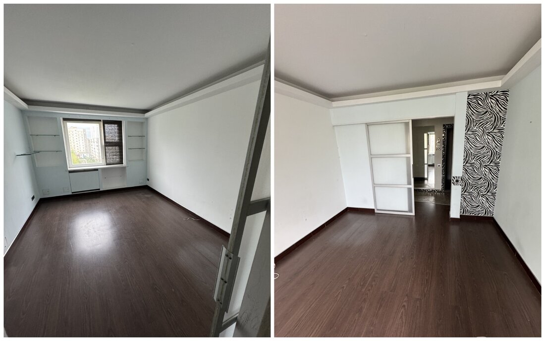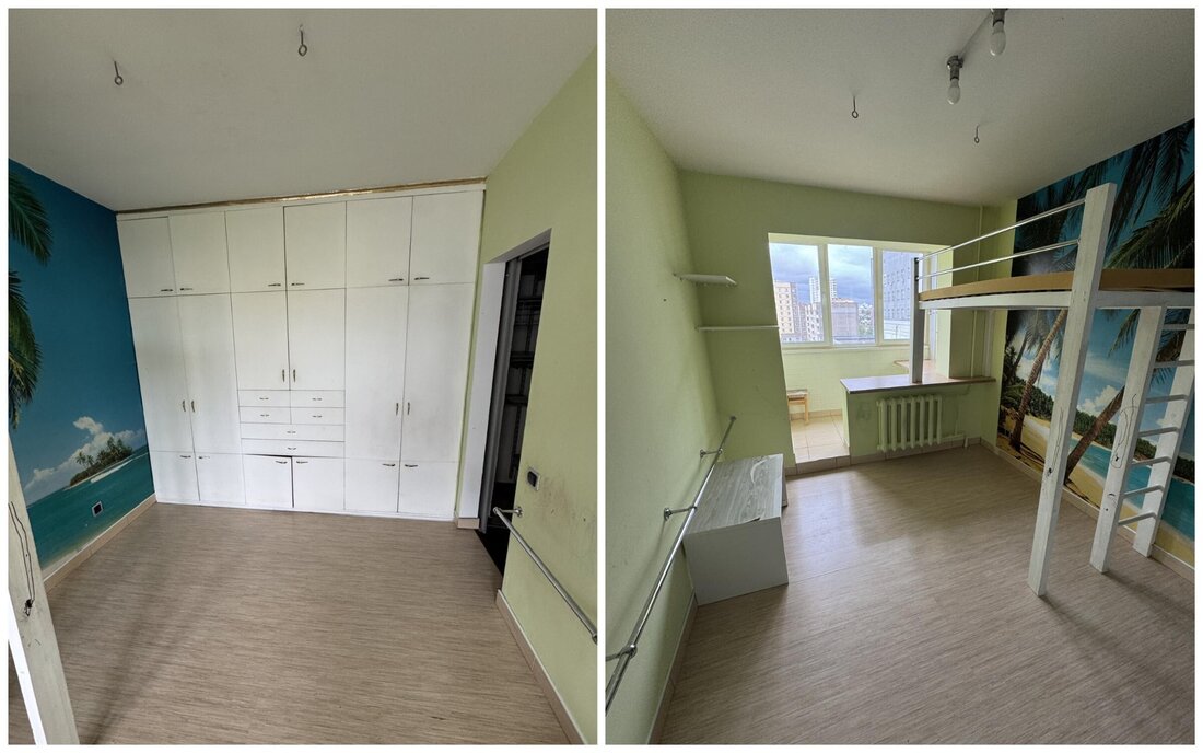 Двушка идет с двумя изолированными комнатами. Она практически освобождена от мебели. одна из комнат была переоборудована в детскую. В коридоре сделаны шкафы.
