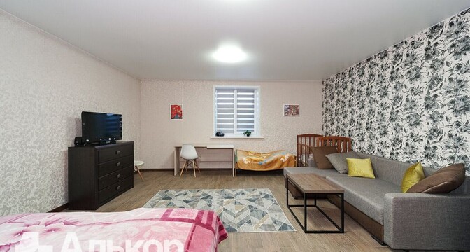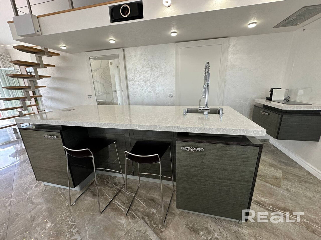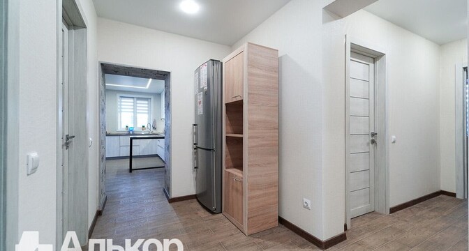 Выполнен дизайнерский ремонт, на стенах венецианская штукатурка, на полу керамическая плитка и паркетная доска.