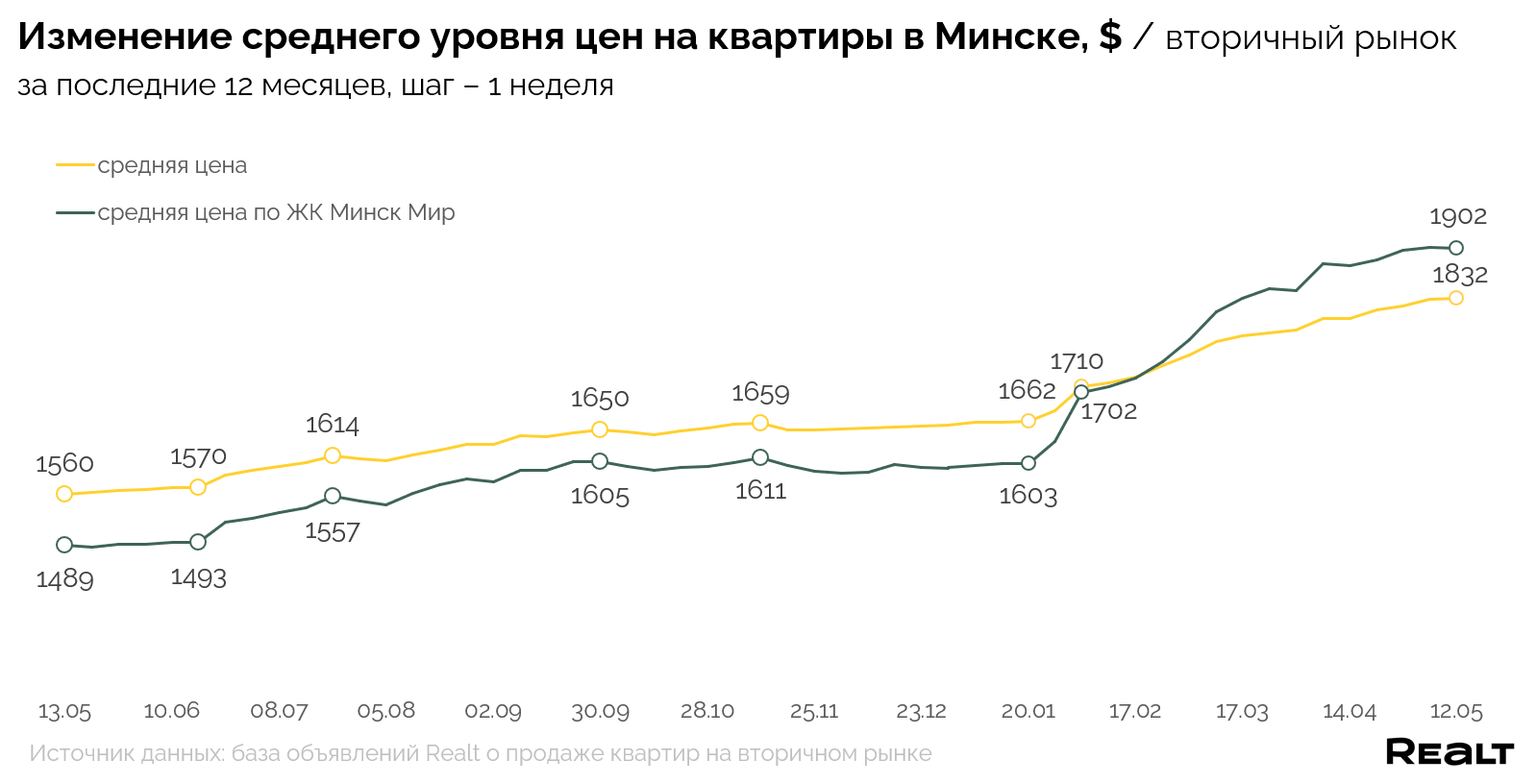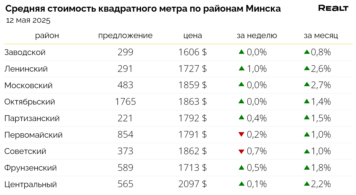На объем предложения и индекс цен в Минске сильно влияет большое количество объявлений в базе Realt о продаже квартир в строящихся новостройках преимущественно Октябрьского, а также Центрального и Московского районов. Чтобы минимизировать их воздействие на показатели, описывающие вторичный рынок продажи квартир, все представленные ниже данные рассчитаны без учета квартир в строящихся домах.