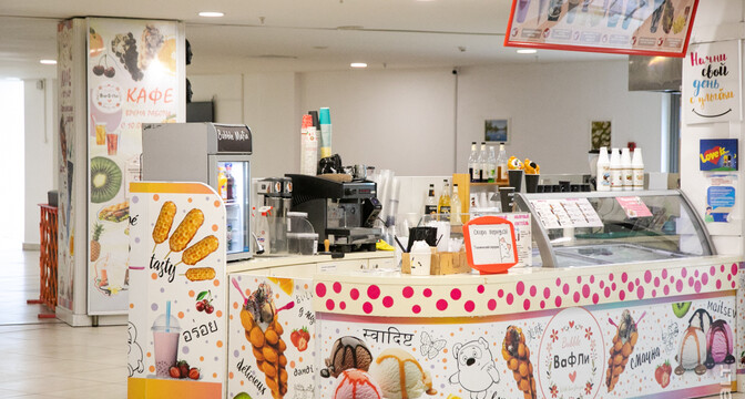 На обед встречаемся на фудкорте. Пицца Темпо, Domino’s, РON рushka, Poke Bowl, Pad Thai, Smetana или уютное кафе «Динамо» — выбор от азиатской кухни до домашних обедов и пончиков в глазури.