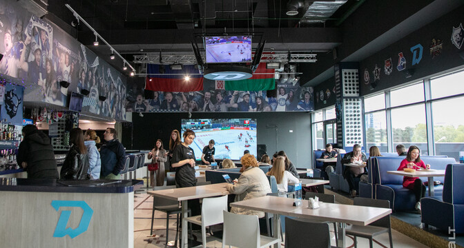 Для нашей команды стало приятной находкой кафе «Динамо». Тут не только можно хорошо и сытно пообедать, но встретить фанатов ХК «Динамо Минск», самих хоккеистов и просто тех, кто ценит спокойную атмосферу, продуманное меню и интерьер с характером. Здесь все напоминает об игре, скорости и ледяном драйве.