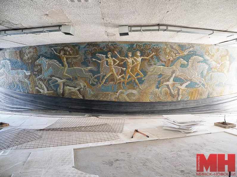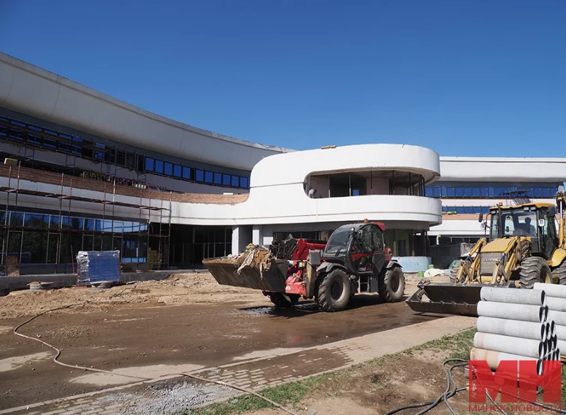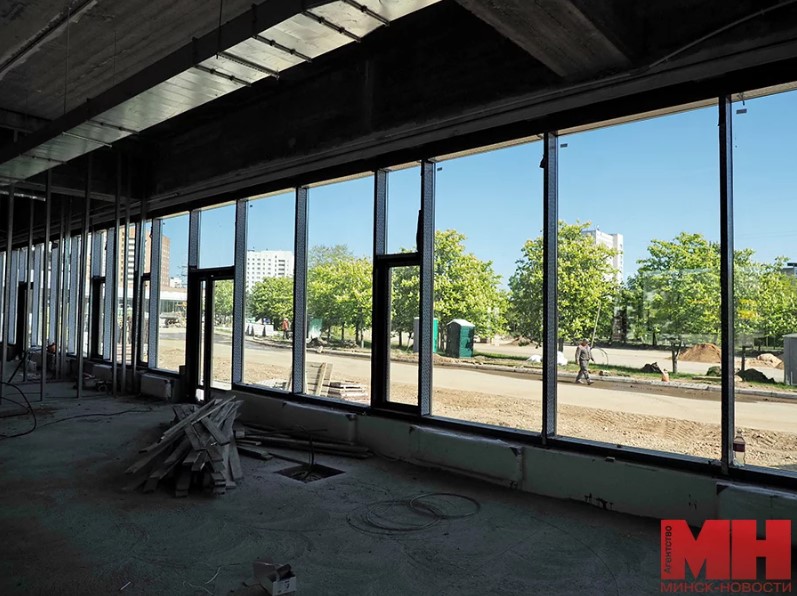 Демонтаж завершен в полном объеме: снесли некоторые перегородки, окна, двери, полы (частично сохранили в центральной части строения, на них уложат новое покрытие), подвесные потолки, полностью заменили кровлю. Также специалисты усилили ряд конструкций. Практически в полном объеме — на 90% — заменили инженерные сети, включая водопровод и ливневую канализацию.