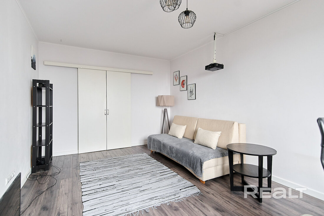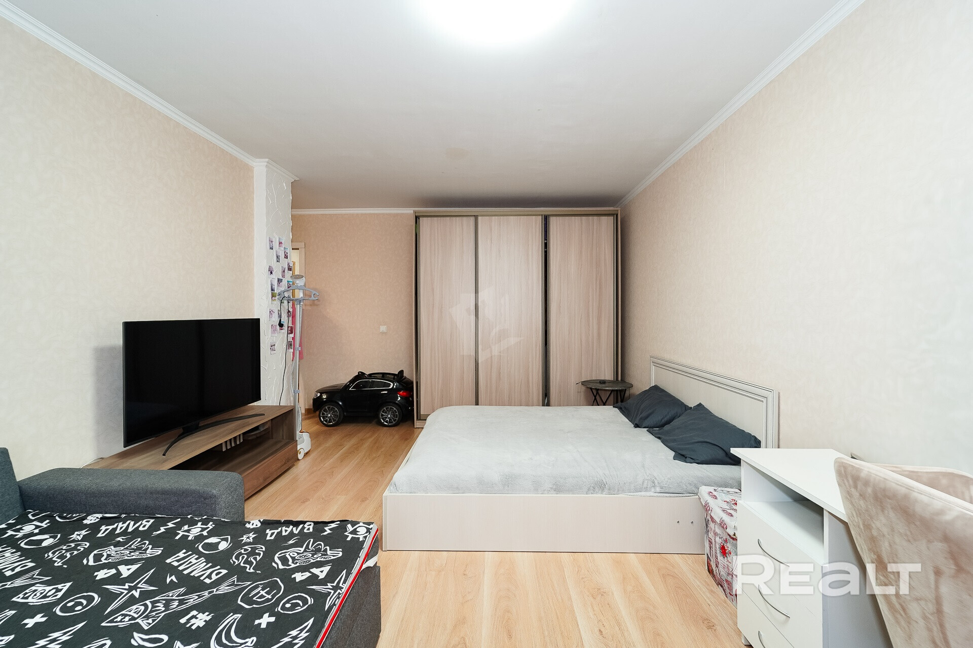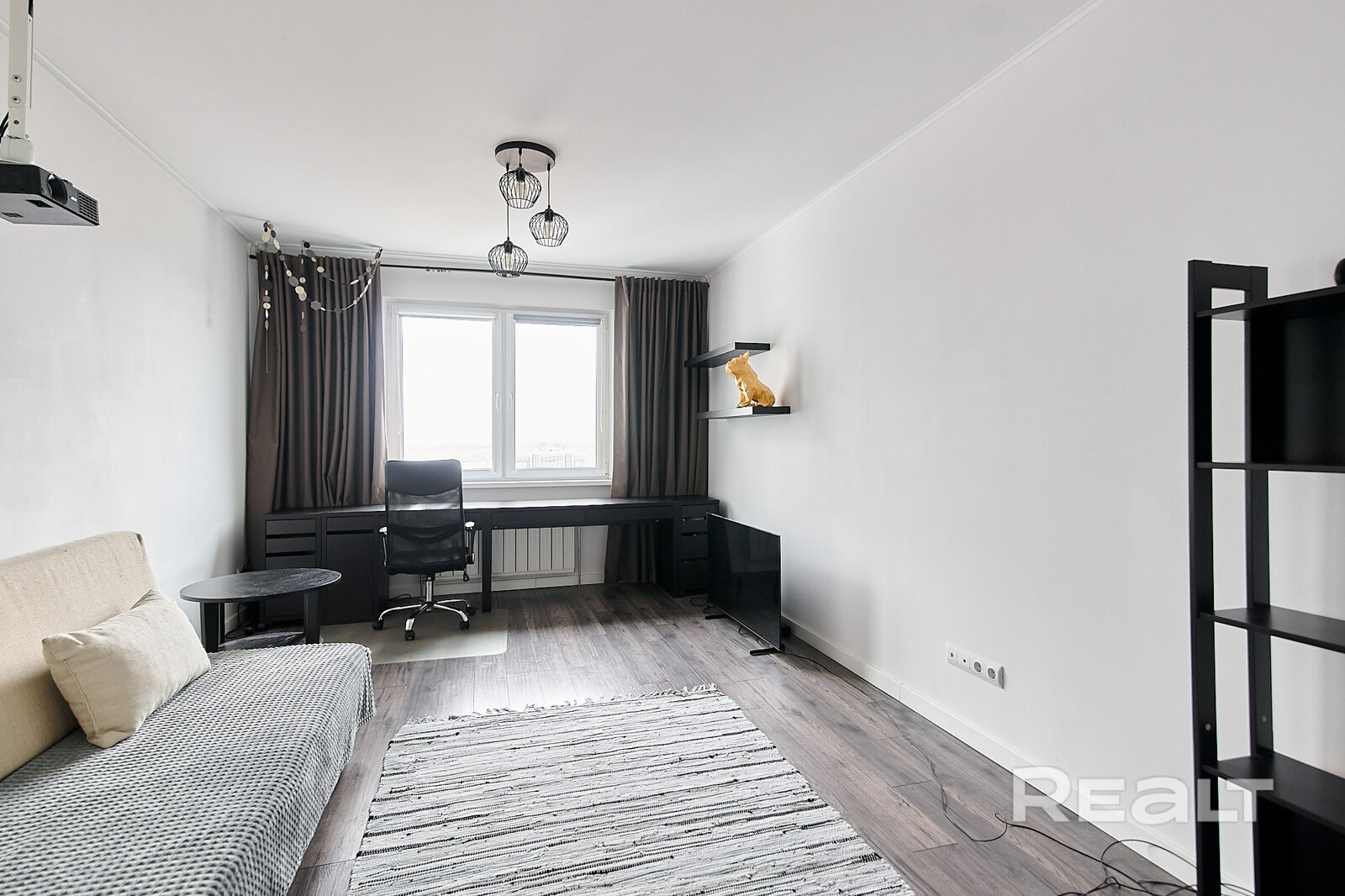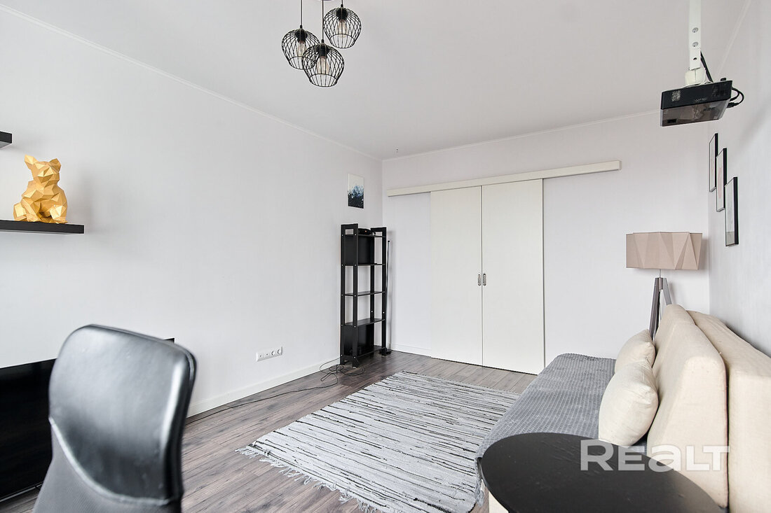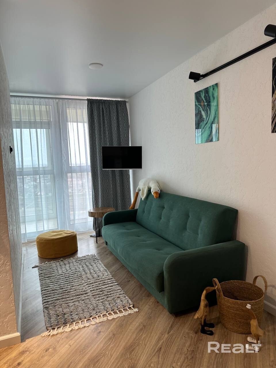 Однокомнатная квартира в микрорайоне Великий Лес по адресу Героев 120 дивизии, 4. До станции метро «Уручье» около километра. Можно подъехать на автобусе или маршрутке.